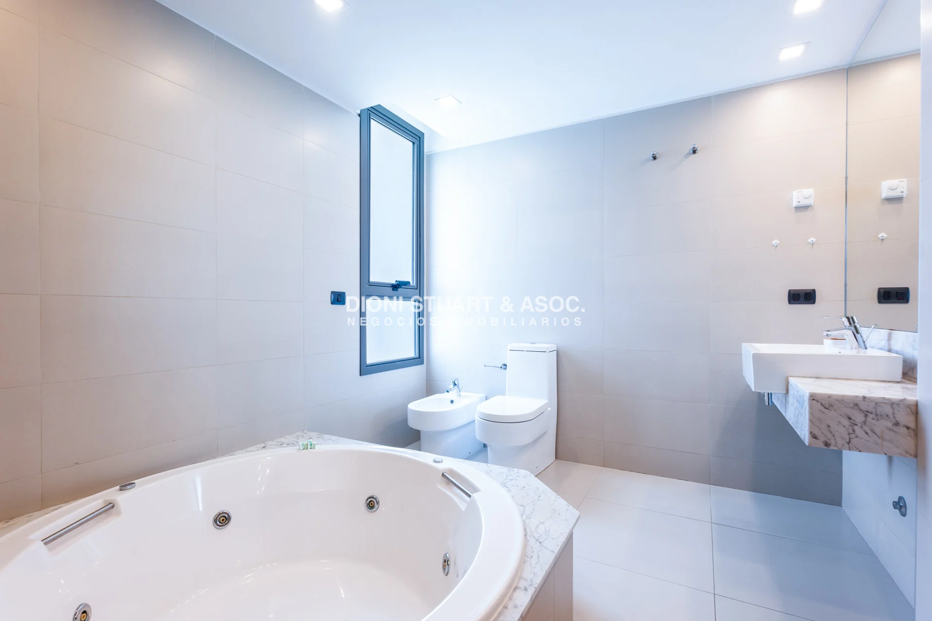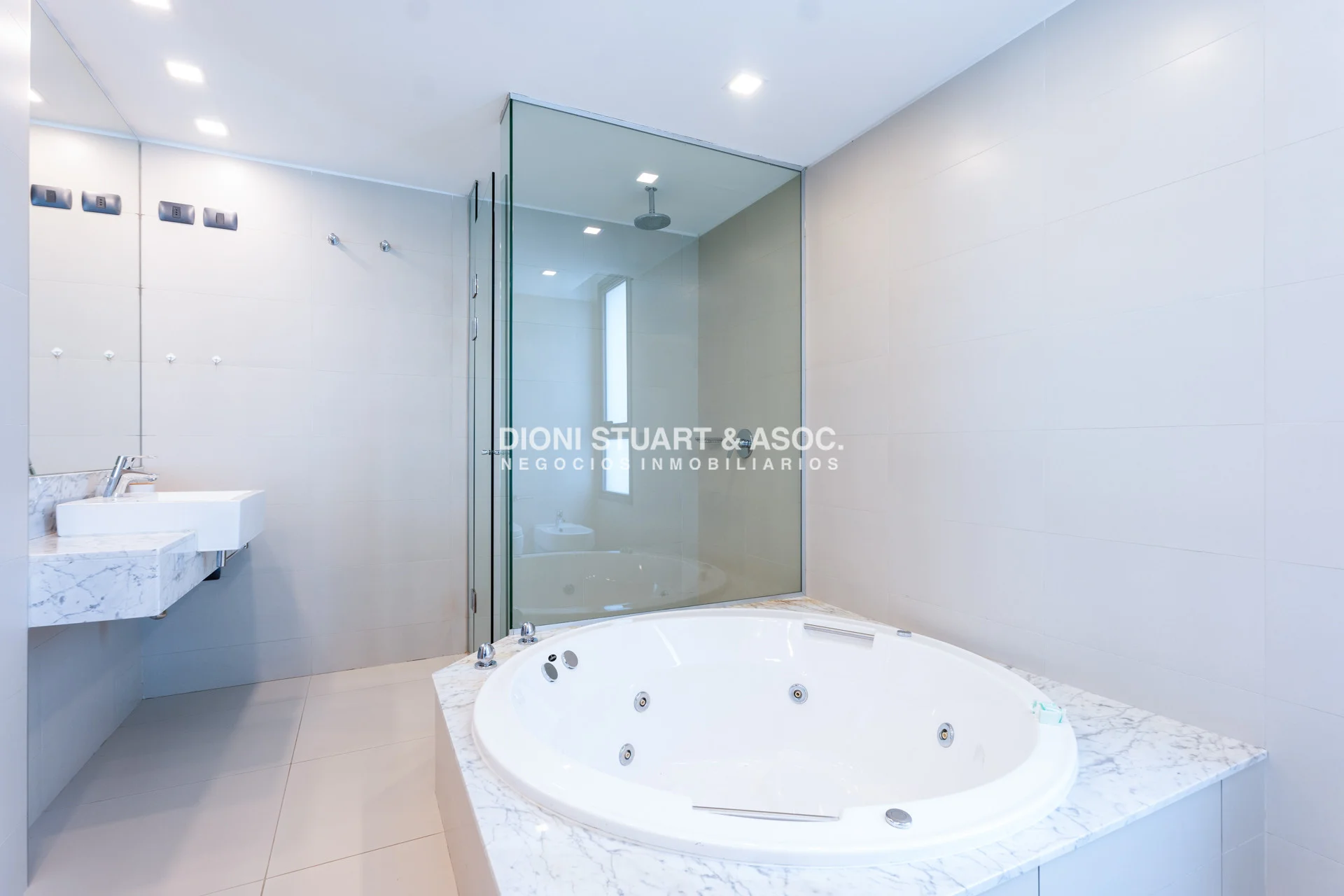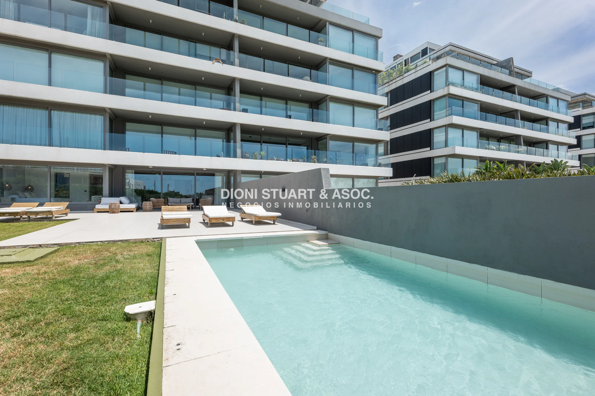 Semipiso de 632 m2 totales incluyendo su hermoso jardín y piscina propia con 216m2 internos Tipologia SS planta baja, tres suite más dependencia con terraza y piscina propia.