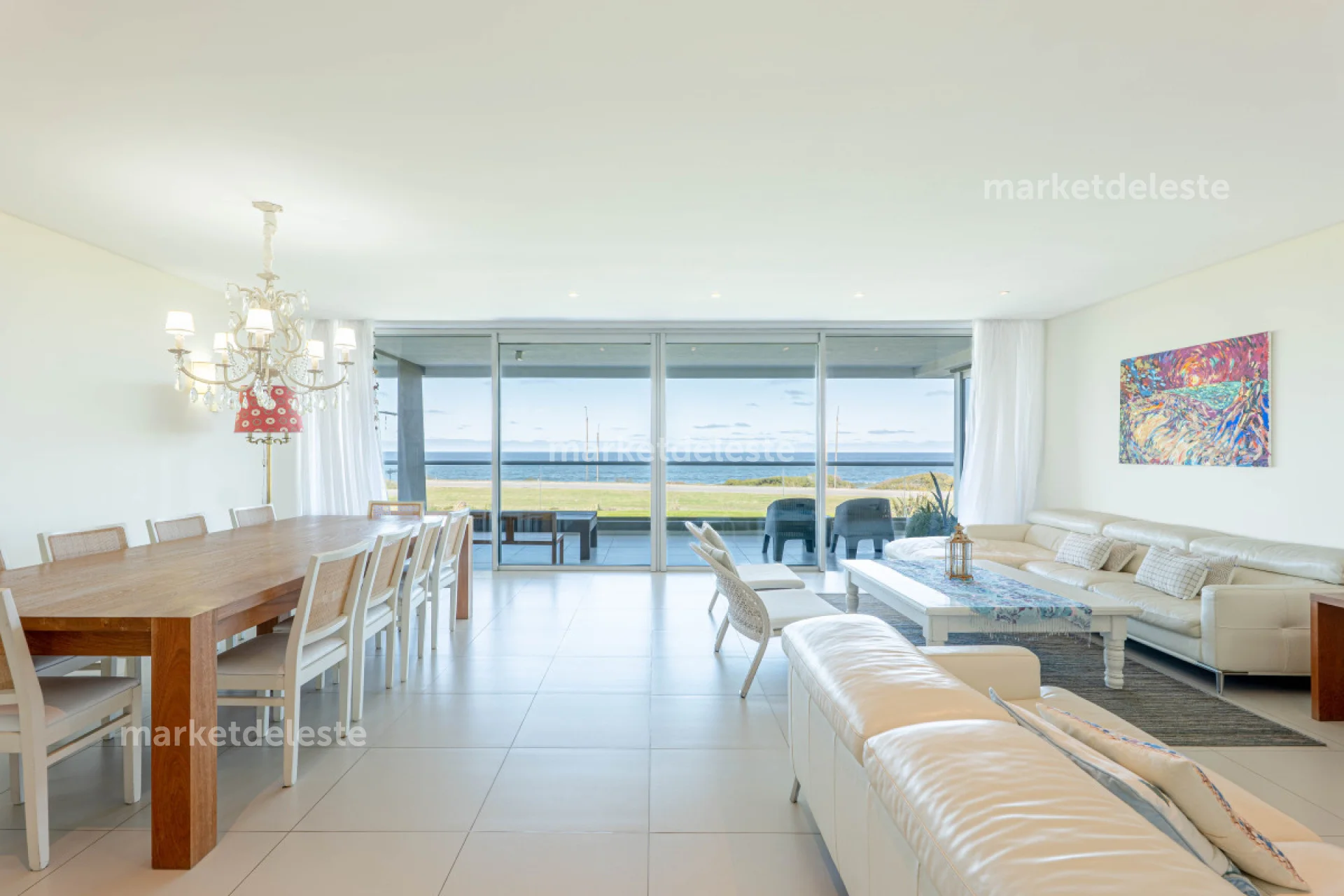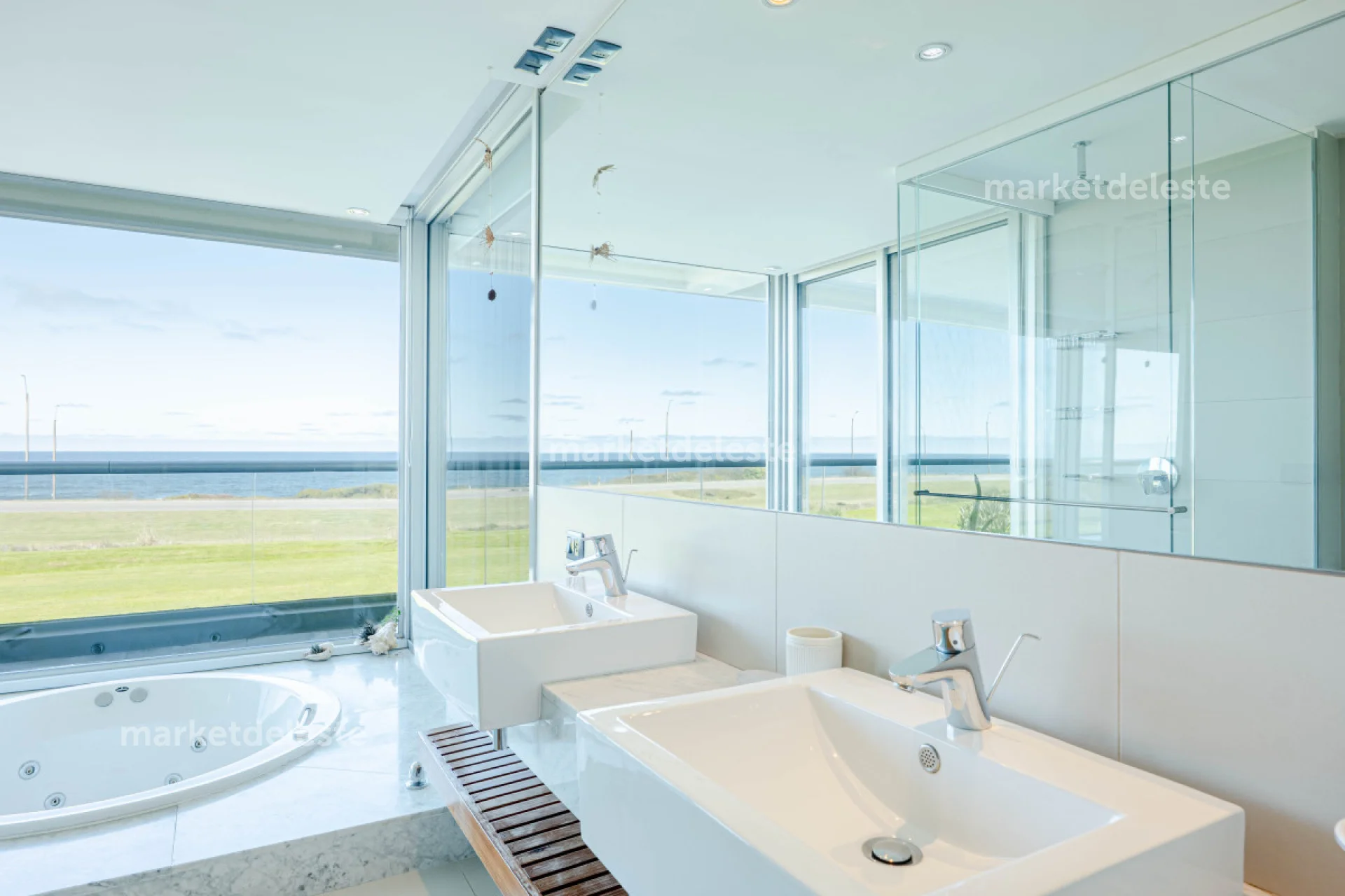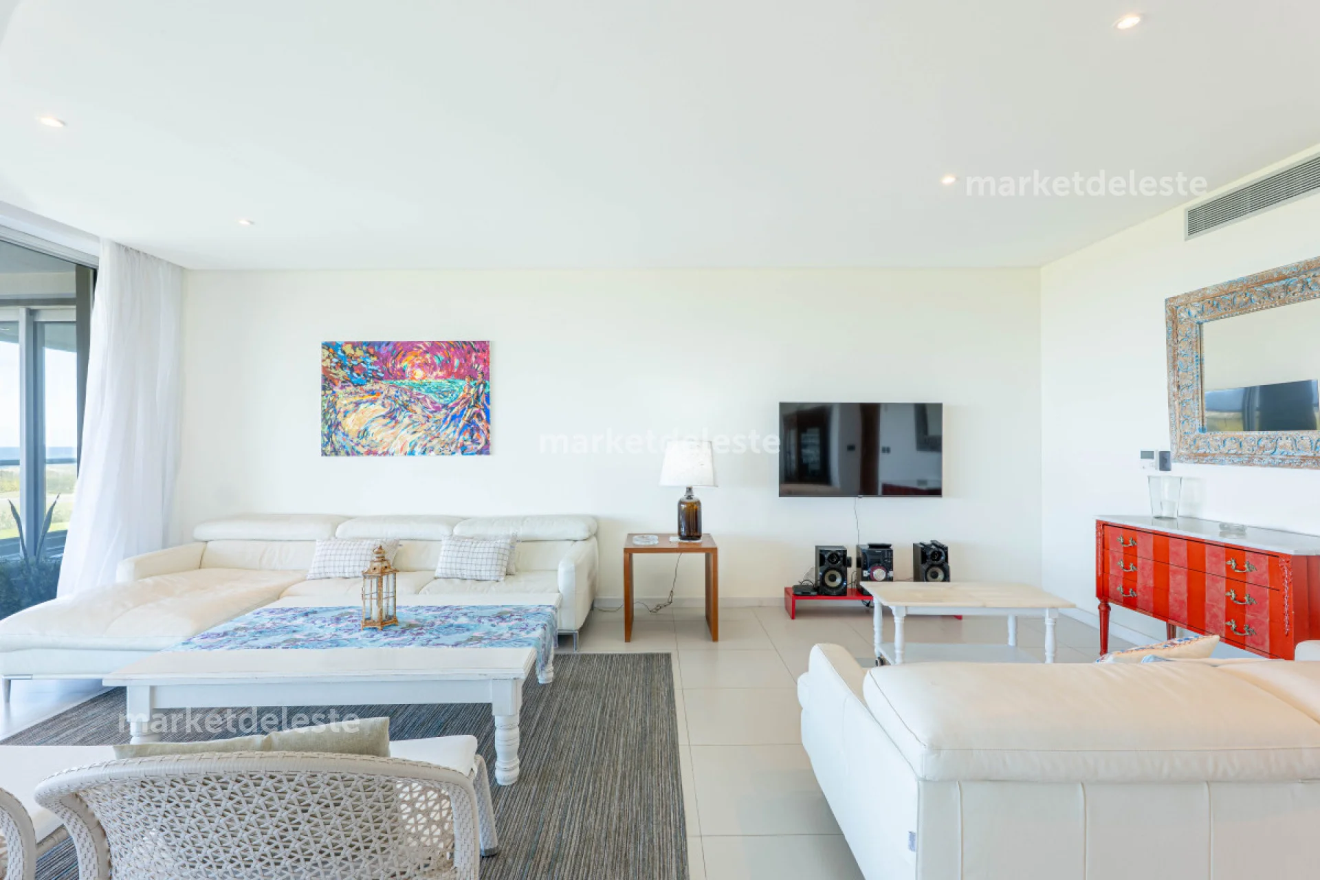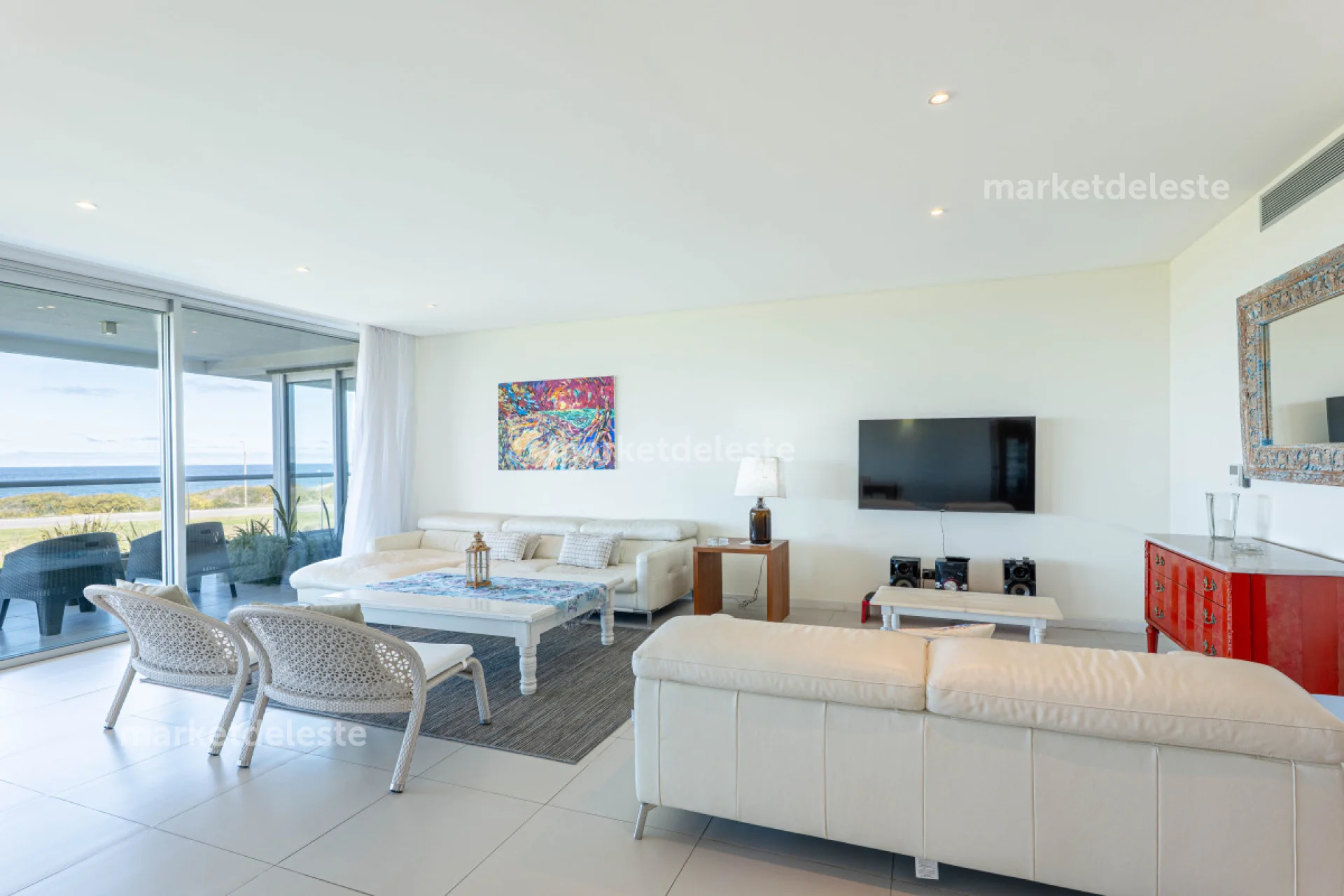 Departamento de gran tamaño y finas terminaciones, excelente ubicación a minutos de La Barra y de Punta del Este. Primera línea en Playa Brava Amplio y luminoso living comedor integrado frente al mar. Cocina espaciosa con isla central, equipamiento ultramoderno, acceso independiente de servicio y dependencia con baño. Terraza exterior con parrillero. 4 dormitorios en suite, master suite, con vestidor y baño con jacuzzi. Referencia Interna : Tera-1392