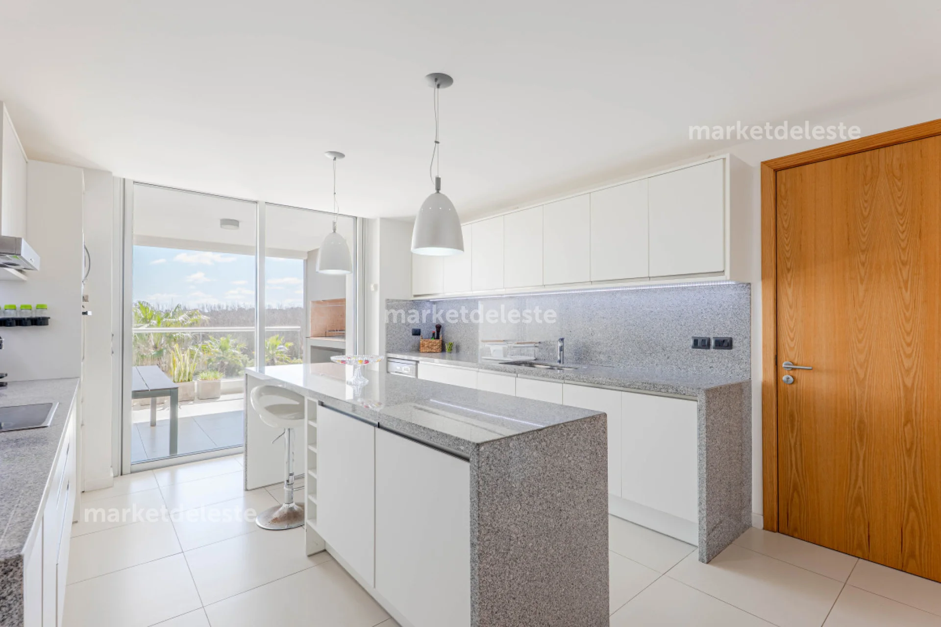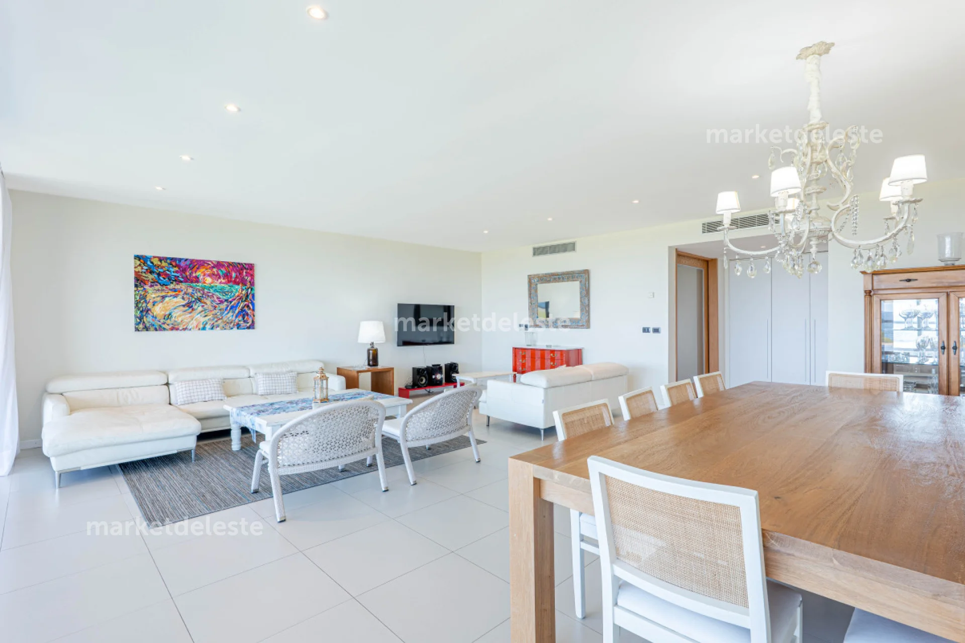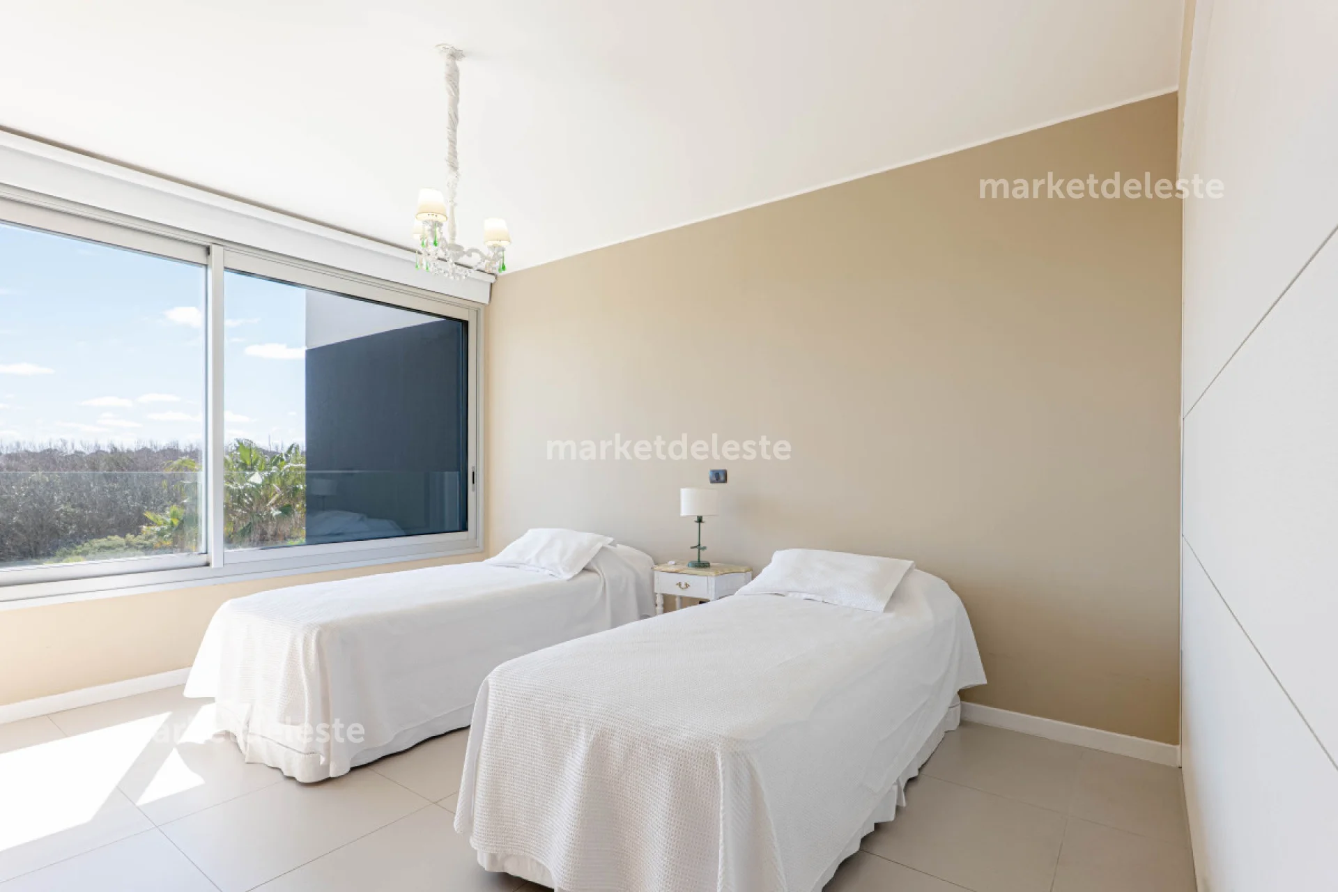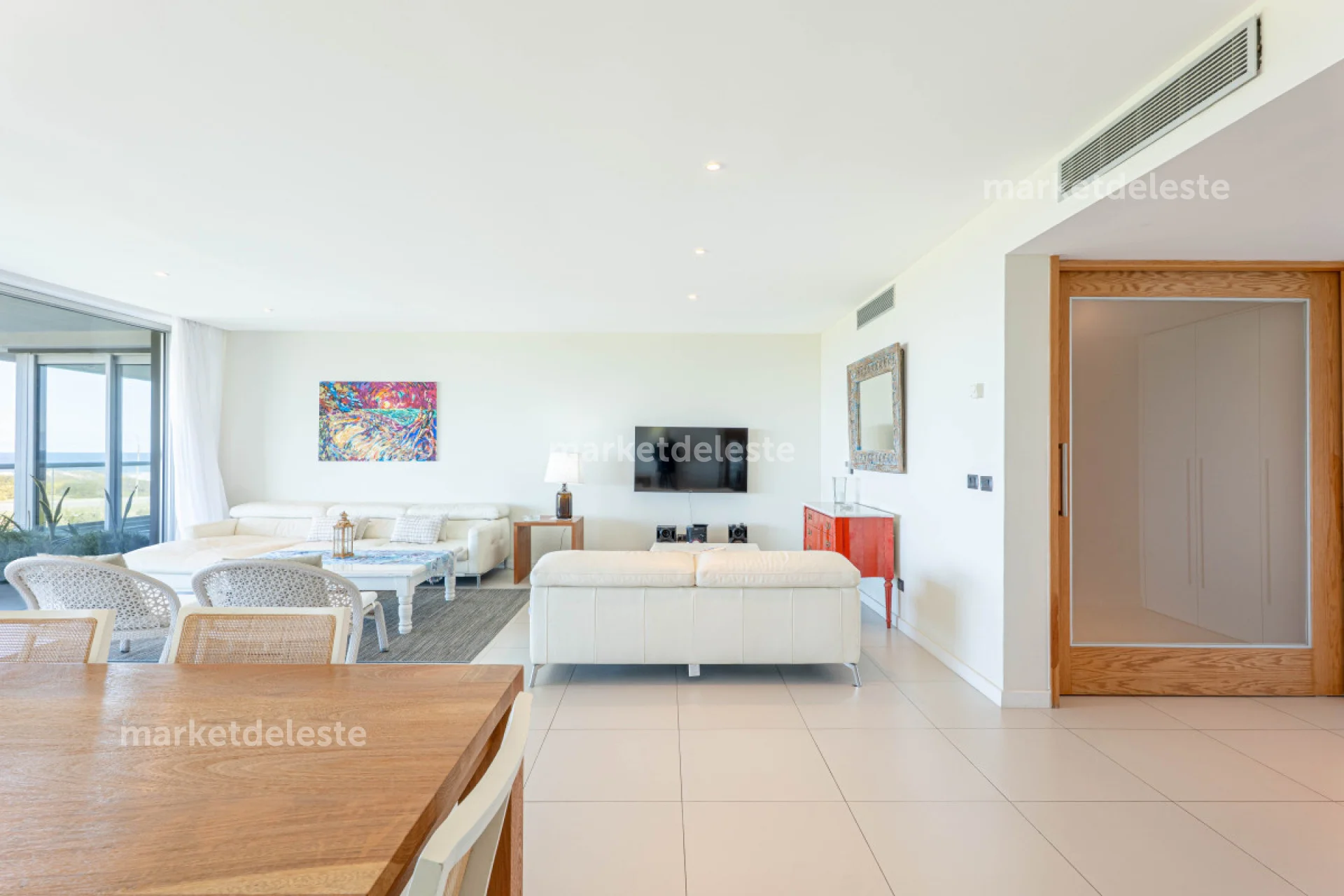 Departamento de gran tamaño y finas terminaciones, excelente ubicación a minutos de La Barra y de Punta del Este. Primera línea en Playa Brava Amplio y luminoso living comedor integrado frente al mar. Cocina espaciosa con isla central, equipamiento ultramoderno, acceso independiente de servicio y dependencia con baño. Terraza exterior con parrillero. 4 dormitorios en suite, master suite, con vestidor y baño con jacuzzi. Referencia Interna : Tera-1392