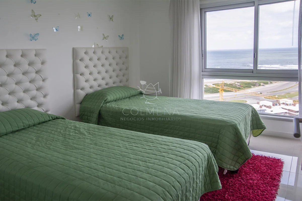 Ofrecemos apartamento en piso alto en Torre Wind Tower Edificio de primera categoría con todos los servicios , a pasos de Playa Brava Caracterizada por sus excelentes Amenities , ubicada en una zona cómoda, cerca de servicios y un lugar de tranquilidad. Cuenta con 3 dormitorios , 3 baños , cocina definida amplia y gran living comedor con salida a su terraza , logrando hermosas vistas al mar Tiene garaje en subsuelo No dude en consultar Referencia Interna : Tera-10826
