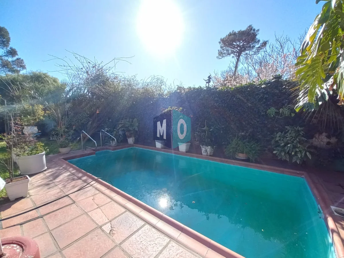 La casa se conecta naturalmente con el exterior, donde destaca una encantadora barbacoa ideal para reuniones al aire libre, acompañada de una piscina rodeada de verde y un jardín muy disfrutable que asegura privacidad y tranquilidad.