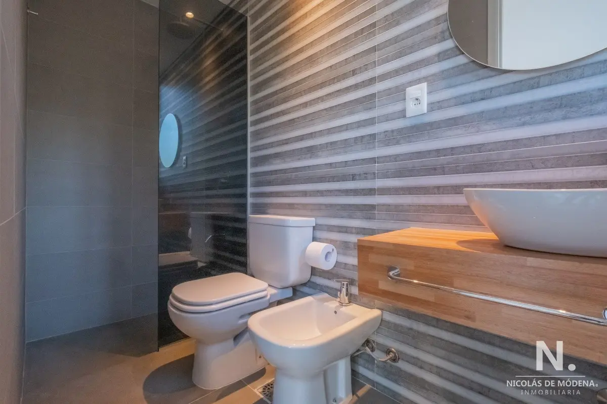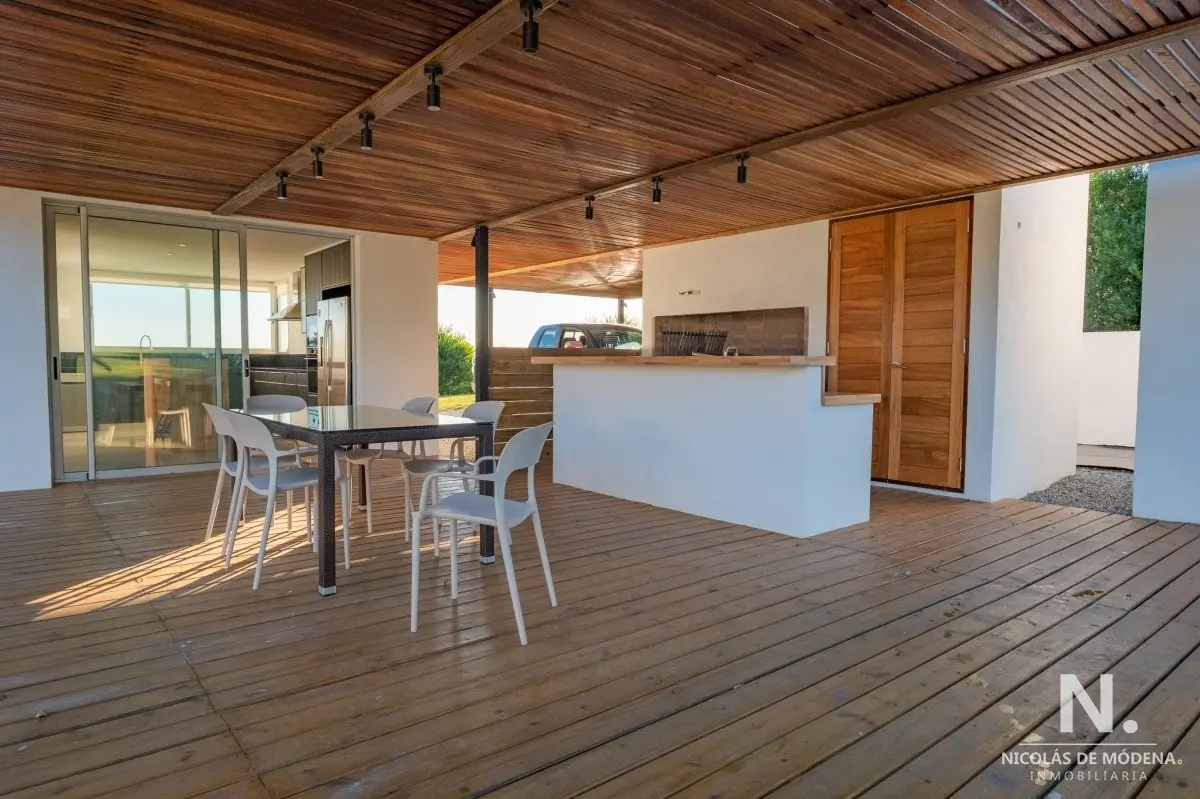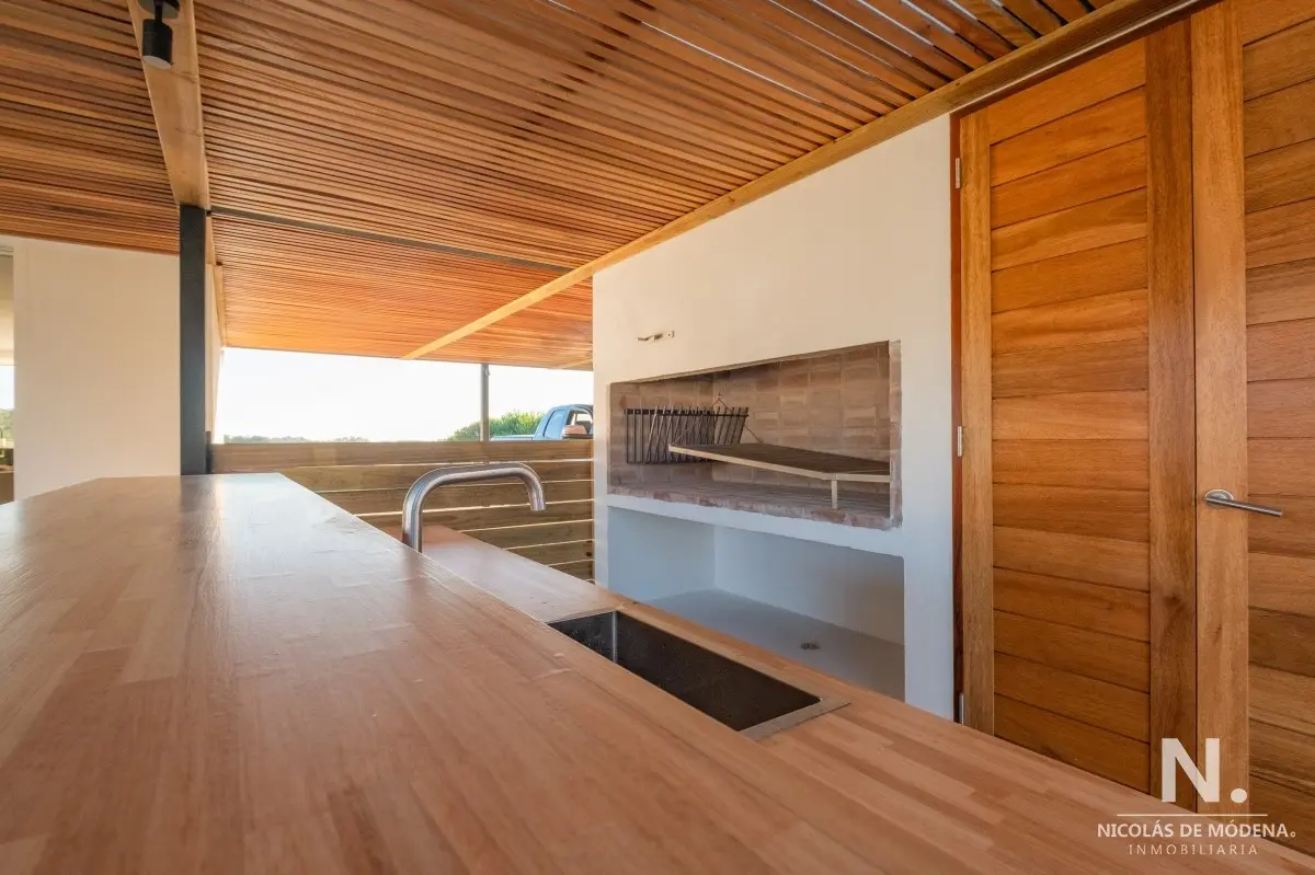 La propiedad cuenta con 4 dormitorios, todos ellos con baño en suite, brindando privacidad y comodidad para los residentes. La cocina es amplia y bien equipada con anafe, microondas, lavavajilla, heladera con congelador, campana y horno, facilitando la preparación de comidas y brindando espacio para la convivencia que incluye áreas de sala y comedor, así como una zona de sala comedor para disfrutar de momentos sociales y de relajación.