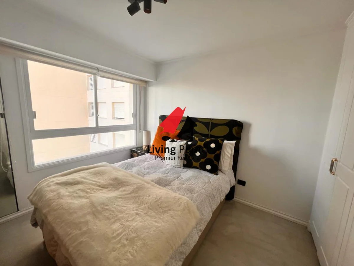 Este apartamento de 110 m², con orientación oeste, es el escenario perfecto para ver los atardeceres más increíbles sobre el océano, con vistas que se extienden desde Punta Ballena hasta la península. Es el espacio ideal para tu familia y amigos, con 3 dormitorios y 2 baños (incluida una suite principal), diseñado para alojar cómodamente hasta 6 personas.