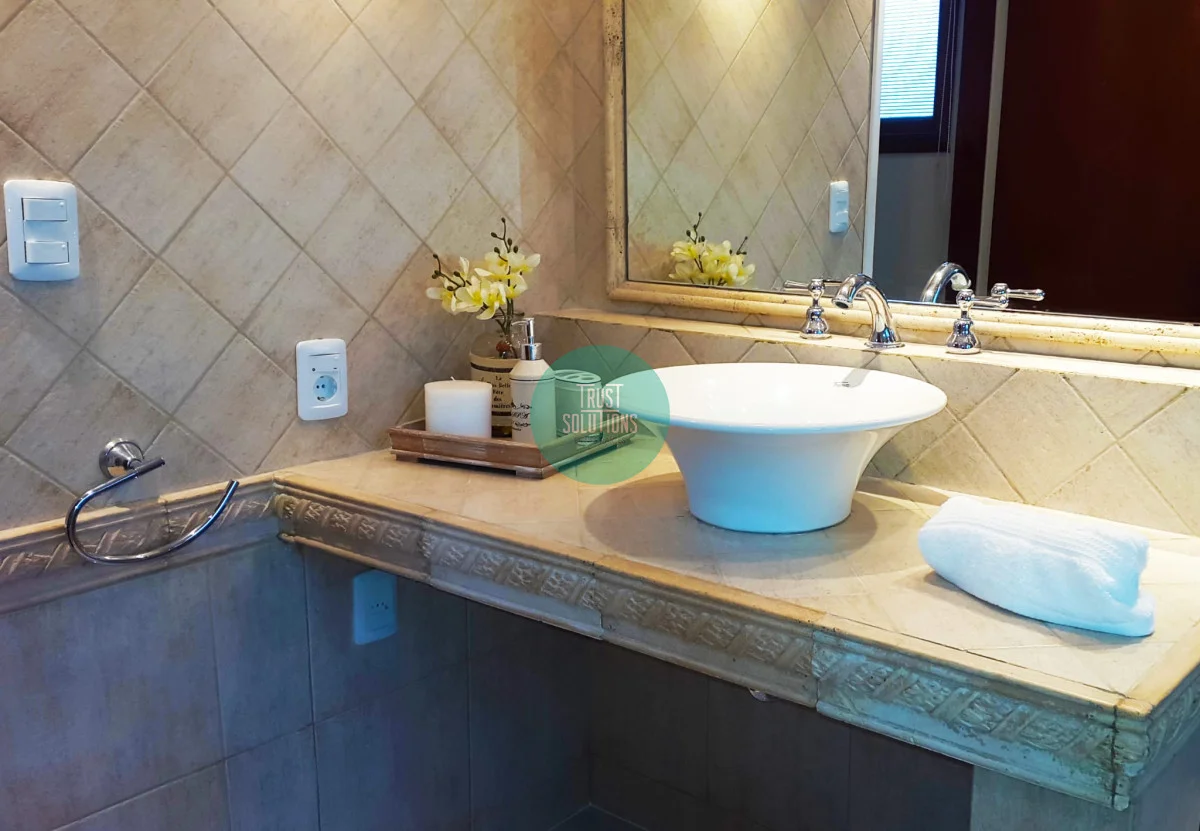 Calefacción central y aire acondicionado en cada habitación, antena satelital, wifi y 6 TV full HD Smart