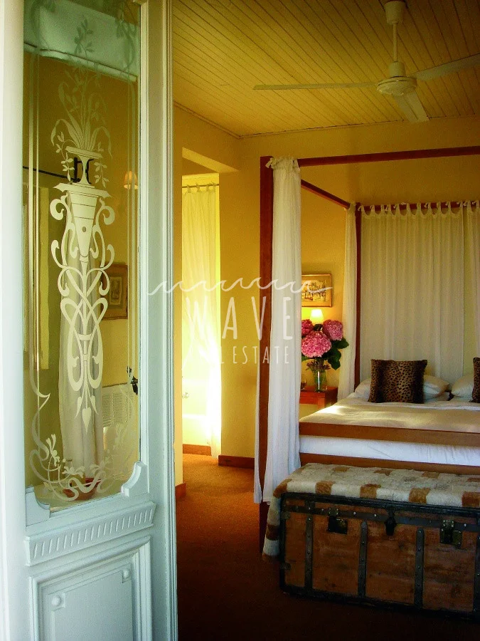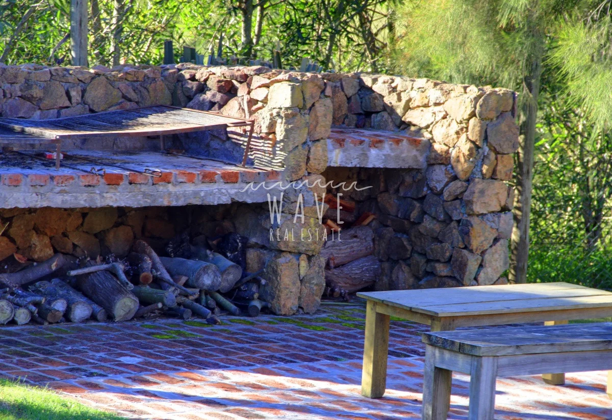 A unos 5 kilómetros del mar de espectacular construcción en piedra ,en un entorno armónico con la combinación del campo y la brisa del mar. Casa en Modulo emplazada sobre un lote de 5 hectáreas, con 8 dormitorios y 7 baños más toilette, de los cuales 6 dormitorios son en suite, living, comedor, playroom, cocina con office bien equipada, con salida directa a una terraza cerrada ideal para días de lluvia. La casa principal que tiene dentro 2 dormitorios con 1 baño y toilette, se ve rodeada de una galería con sillones, rodeada por alegrías, azaleas y jazmines, luego esta el parrillero y la piscina climatizada. El resto de los dormitorios se ven divididos en 2 bloques de 3 suites el primero y 2 suites el segundo. Detrás de este último bloque tenemos el lavadero, donde hay freezers de refuerzo para el verano. La chacra tiene un tajamar muy pintoresco y un asador al aire libre. Cada suite tiene su conexión direct tv. y su tv.-