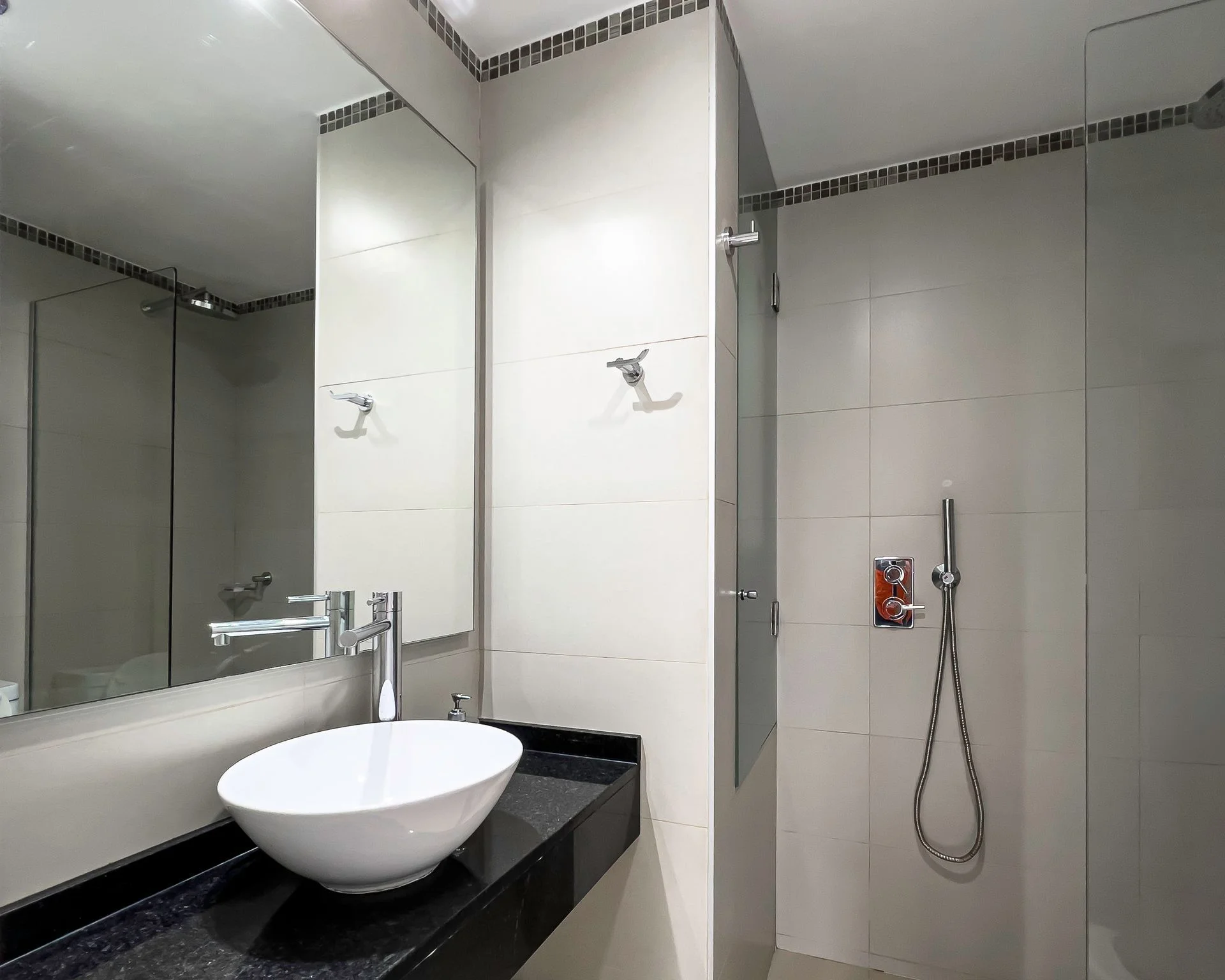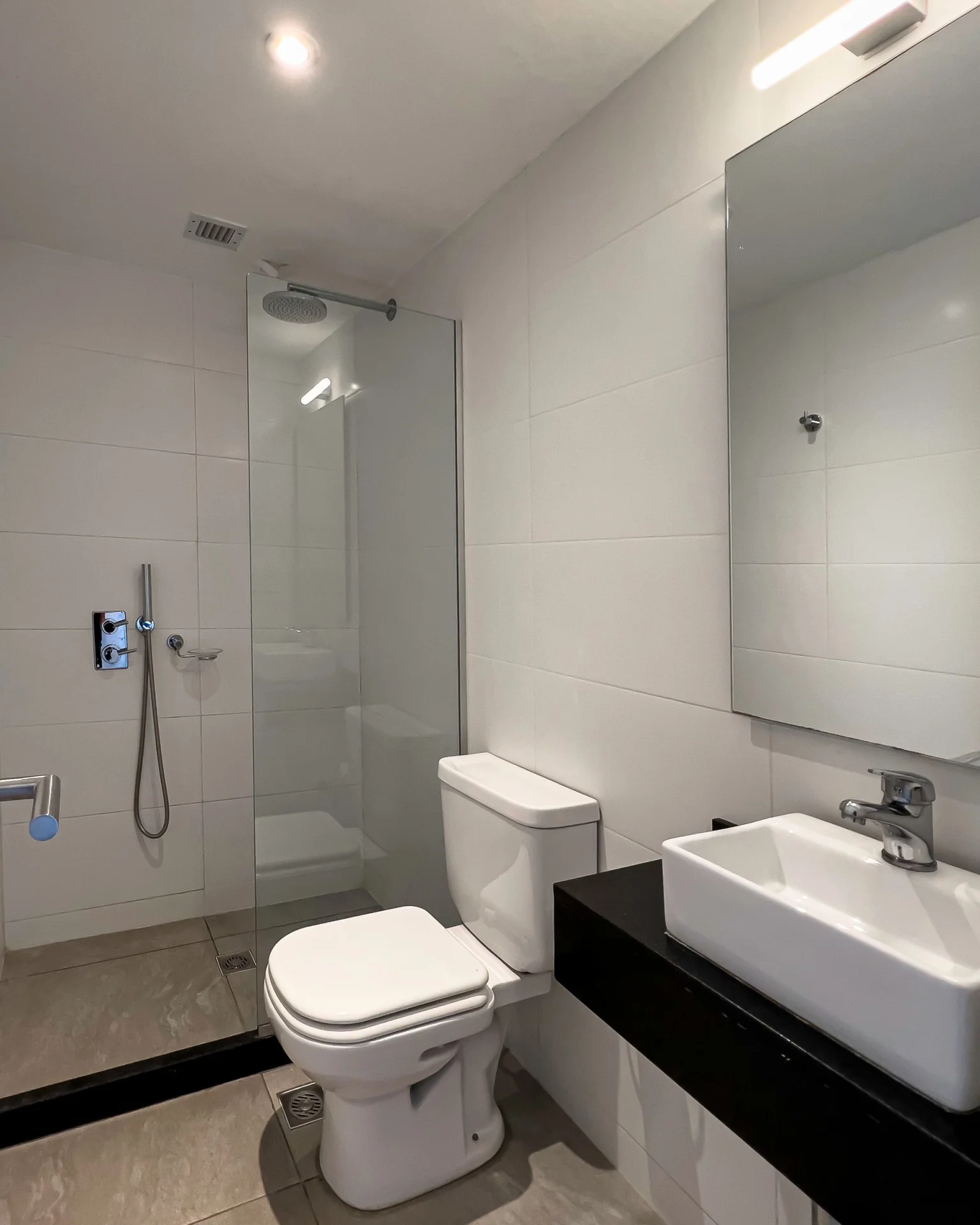 La unidad cuenta con 2 dormitorios, uno de ellos en suite, 2 baños completos, cocina integrada y un amplio living comedor con gran entrada de luz natural. Todos los ambientes disponen de aire acondicionado, garantizando confort durante todo el año.