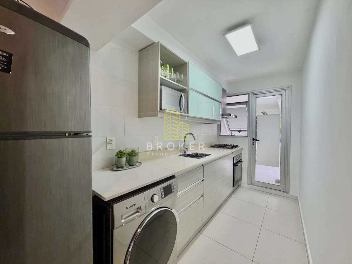 Venta de apartamento con living comedor con salida a balcón, amplica cocina integrada, 1 dormitorio, 1 baño, y espacioso balcón contra frente.