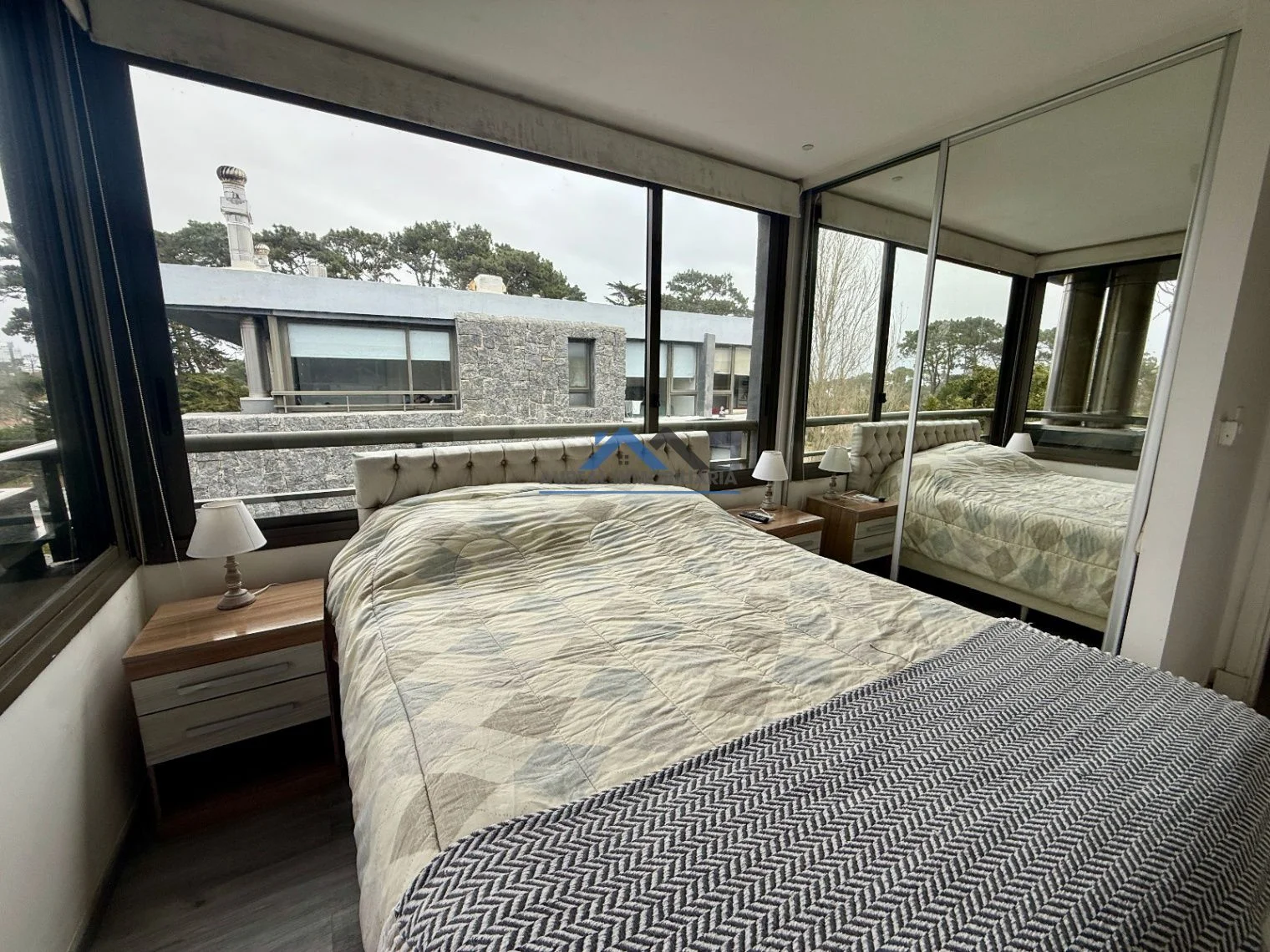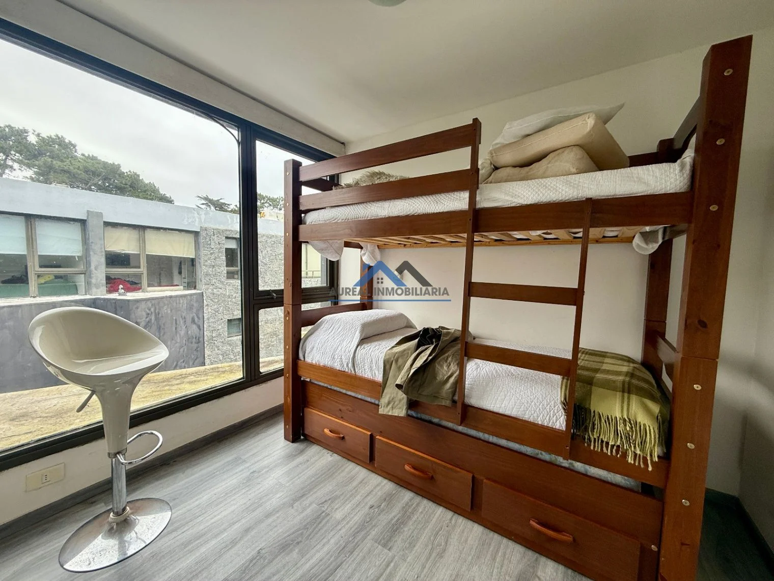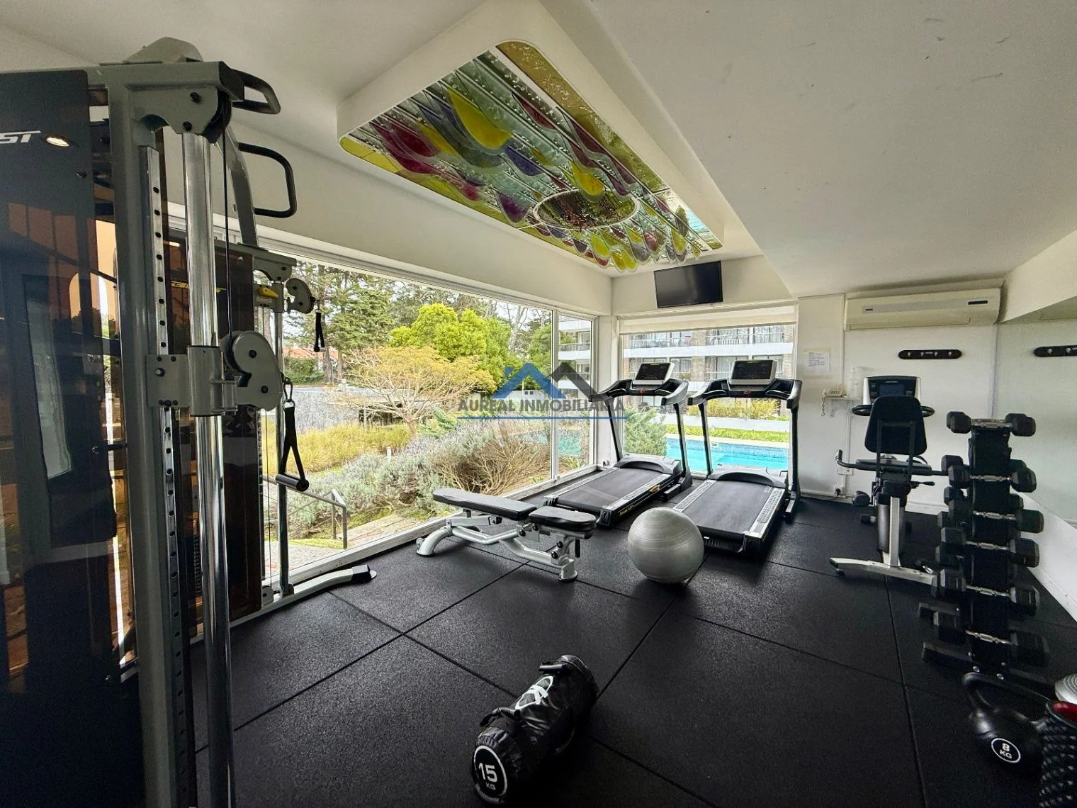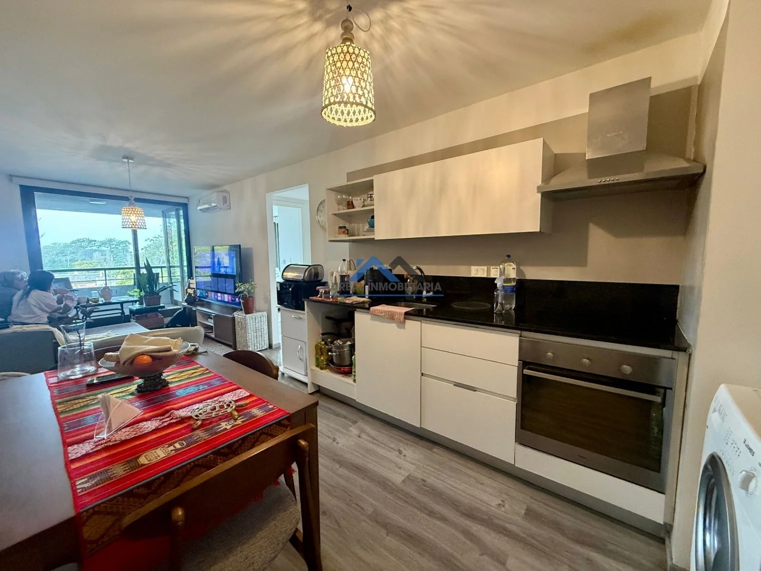 El apartamento cuenta con una disposición contrafrente y una orientación sur que asegura luminosidad y confort. Con una antigüedad de solo 5 años, ofrece un diseño moderno y funcional que incluye un ambiente principal con un acogedor living-comedor, una cocina equipada, un baño y un balcón con parrillero que invita a disfrutar del aire libre. La propiedad está equipada con todas las comodidades necesarias, tales como aire acondicionado, cámaras CCTV, además de contar con servicios de seguridad y una amplia gama de amenities como piscina exterior y climatizada, gimnasio, sauna, y sala de juegos, todo en un entorno arbolado y con áreas verdes bien mantenidas.