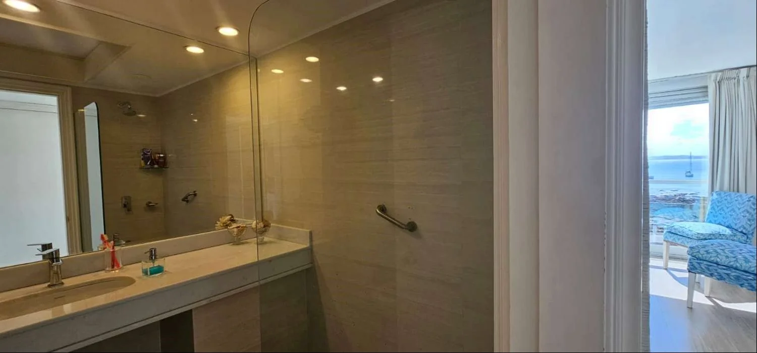 Ingresamos a una cómoda recepción y al gran living comedor con acceso a una terraza maravillosa con vista al puerto, el dormitorio principal también con la misma vista doble ventana y ventanal en 2 de sus paredes, con baño en suite completamente reciclado.