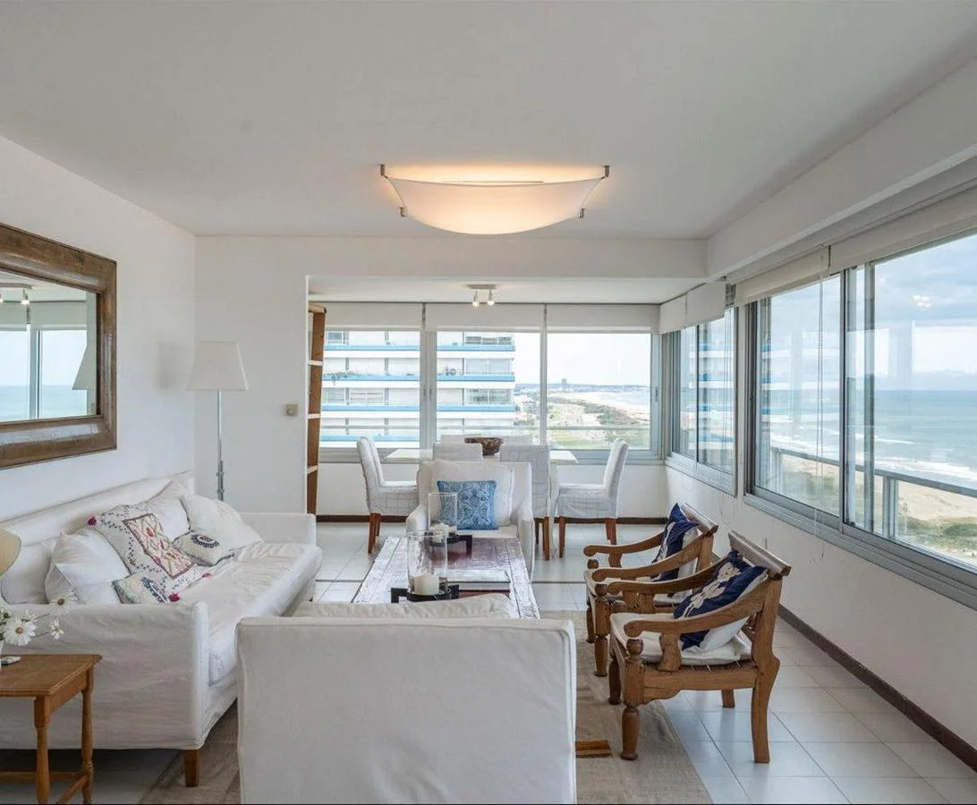 CASASWEB(236647) Acogedor apartamento de cuatro dormitorios cde 185 m2 nos recibe con un gran Living Comedor en forma de L con una fantástica vista al mar.. Ubicado en primera línea de Playa Brava, próximo a la Península te ofrece todo lo que necesitas para disfrutarlo los 365 días del año.4 dormitorios y 4 baños. Cocina definida, terraza cerrada, lavadero y garage con baulera, y capacidad para dos vehículos hacen a esta propiedad. Su amplio living y su gran vista al mar son los protagonistas de este apartamento. La excelente luz natural y el mobiliario de madera arrojan calidez y confort a los espacios de encuentro.Si disfrutas del mar con todos los sentidos y deseas que forme parte de tu día a día, puede que esta sea la propiedad que estás buscando.Amenities:Portería 24hsServicio de mucamaServicio de playaGarajistaGimnasioGastos Comunes/ Expensas usd aproximadamente.Precio de venta más 3%+IVA Honorarios Inmobiliarios Ver mas detalles en casasweb.com?236647