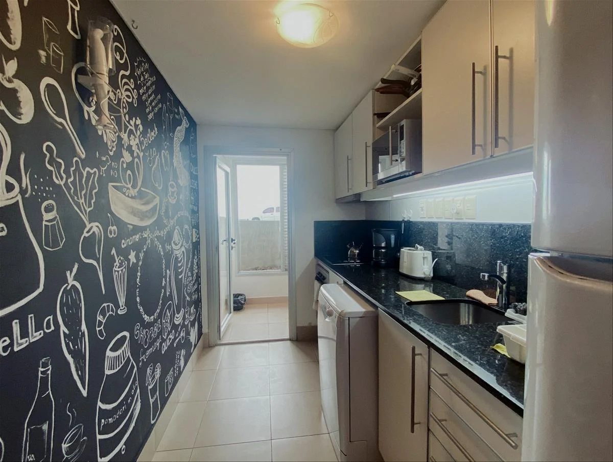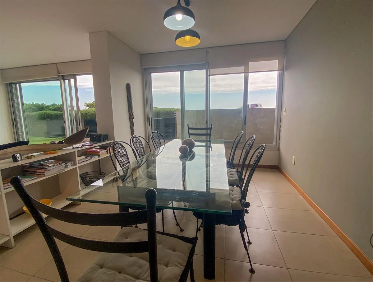 El departamento tiene un amplio living y comedor definidos con salida al jardín, tres dormitorios en suite, Toillete de recepción, cocina definida con terraza lavadero, guardilla, garaje con entrada directa al departamento para dos vehículos