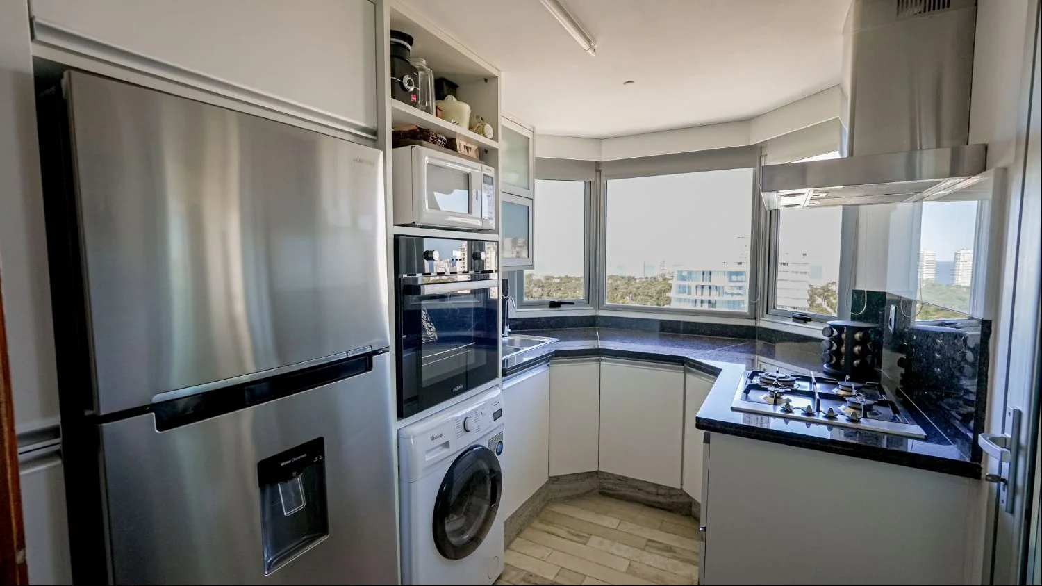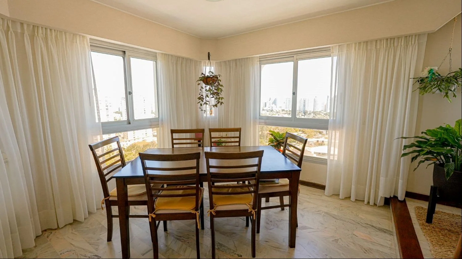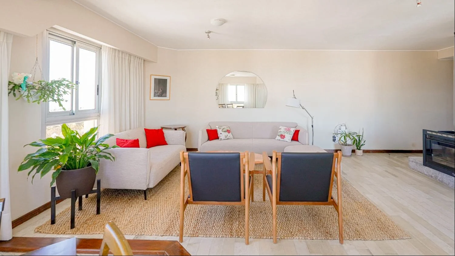El apartamento cuenta con amplio living, comedor, cocina independiente, tres dormitorios (uno en suite con losa radiante) y dos baños calefaccionado con estufa a pellet. También cuenta con terraza con parrillero propio e incluye cochera privada con baulera.
