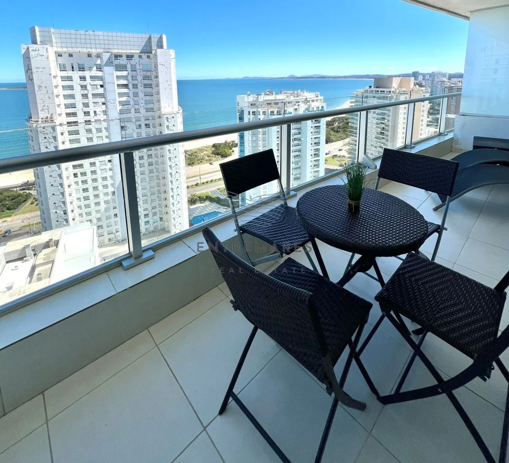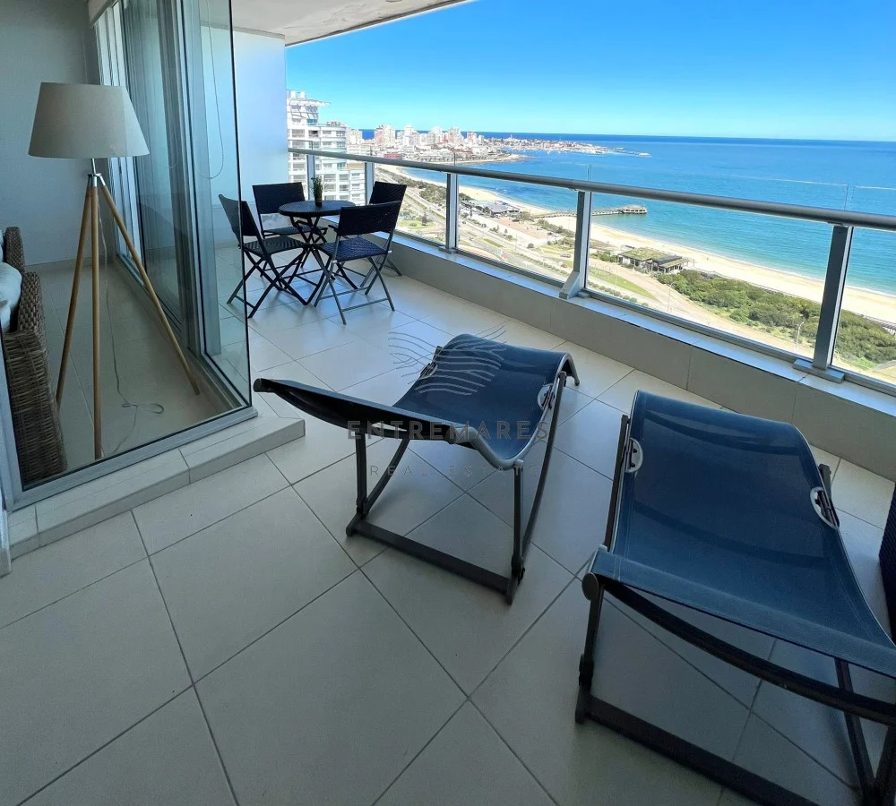 Amplia terraza con vistas a Playa Mansa.