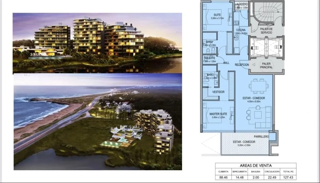 Hermoso departamento frente al mar. Vista plena al mar y a la laguna del diario. A estrenar amueblado. 2 dormitorios en suite mas toilette. Cocina definida con lavadero. Amenities de lujo Piscina exterior 2 gran tamaño borde infinito vista mar y laguna. Piscina interior con camastros climatizada. Sauna. Sala de juegos adolescente Sala de juegos infantil Sala de juegos adultos ajedrez. Salón de recepción posibilidad de eventos. Gimnasio Barbacoas cerradas vista al mar laguna y bosque. Espectacular recepción con portería 24 hs en verano. Portería en recepción exterior todo el año 24 horas Lavadero Garaje y gastos de ocupación incluidos en el precio final. (CW237164)
