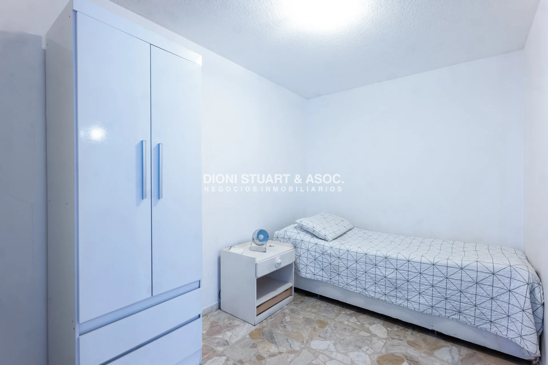 El medio dormitorio es práctico, con puerta corrediza y cama marinera, ideal para 2 personas o colocar un escritorio y que sea el office.