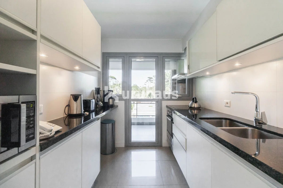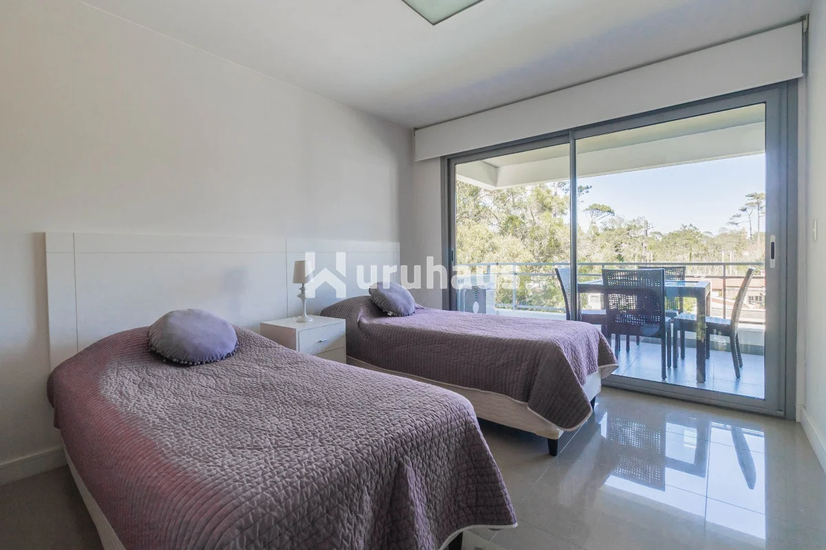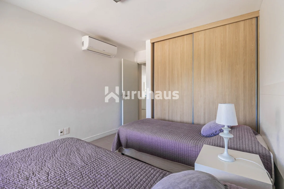 Pent-house de dos dormitorios, uno en suite con jacuzzi; dos baños completos; living- comedor muy luminoso y amplio que se integra a la cocina totalmente equipada. Gran balcón que rodea gran parte del apartamento, con un parrillero de uso personal.