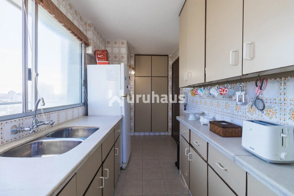 Departamento con dos dormitorios en suite; living-comedor amplio que se conecta con el balcón, donde se puede disfrutar de una vista panorámica al mar. Cuenta con parrillero propio, una mesa grande y reposeras. La cocina es un espacio independiente, con linda circulación de aire, muy equipada y mucho espacio de guardado.