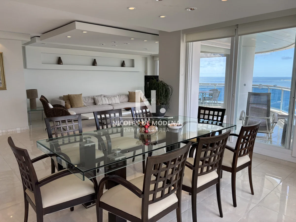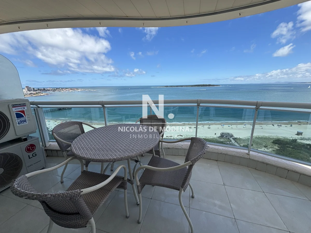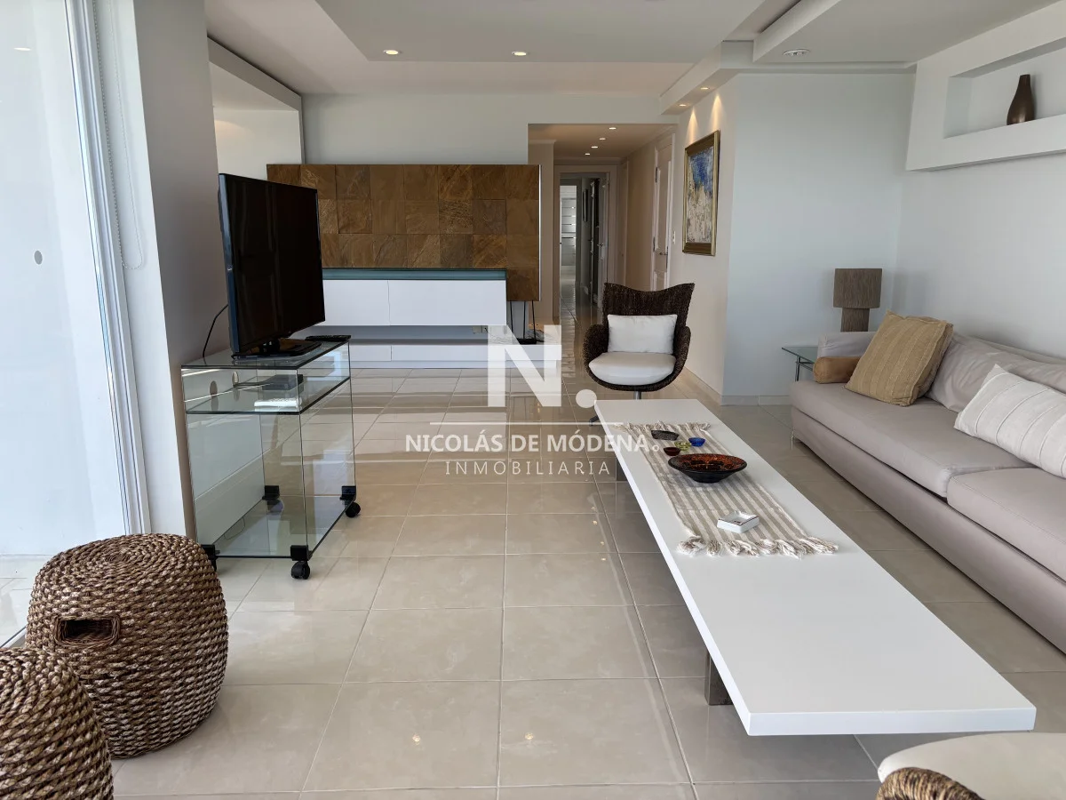 Millenium Tower! Edificio icono pegado a Enjoy Hotel en primera línea frente al mar. Piso alto, living comedor, gran balcón terraza, toilette, tres suites y dependencias de servicio. Garage doble. Mucama diaria, wifi, cable. Excelentes servicios premium. Consulte a nuestros asesores. Referencia Interna : Tera-22235