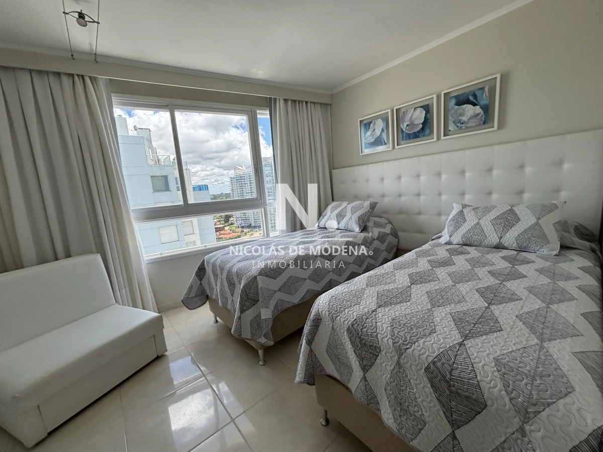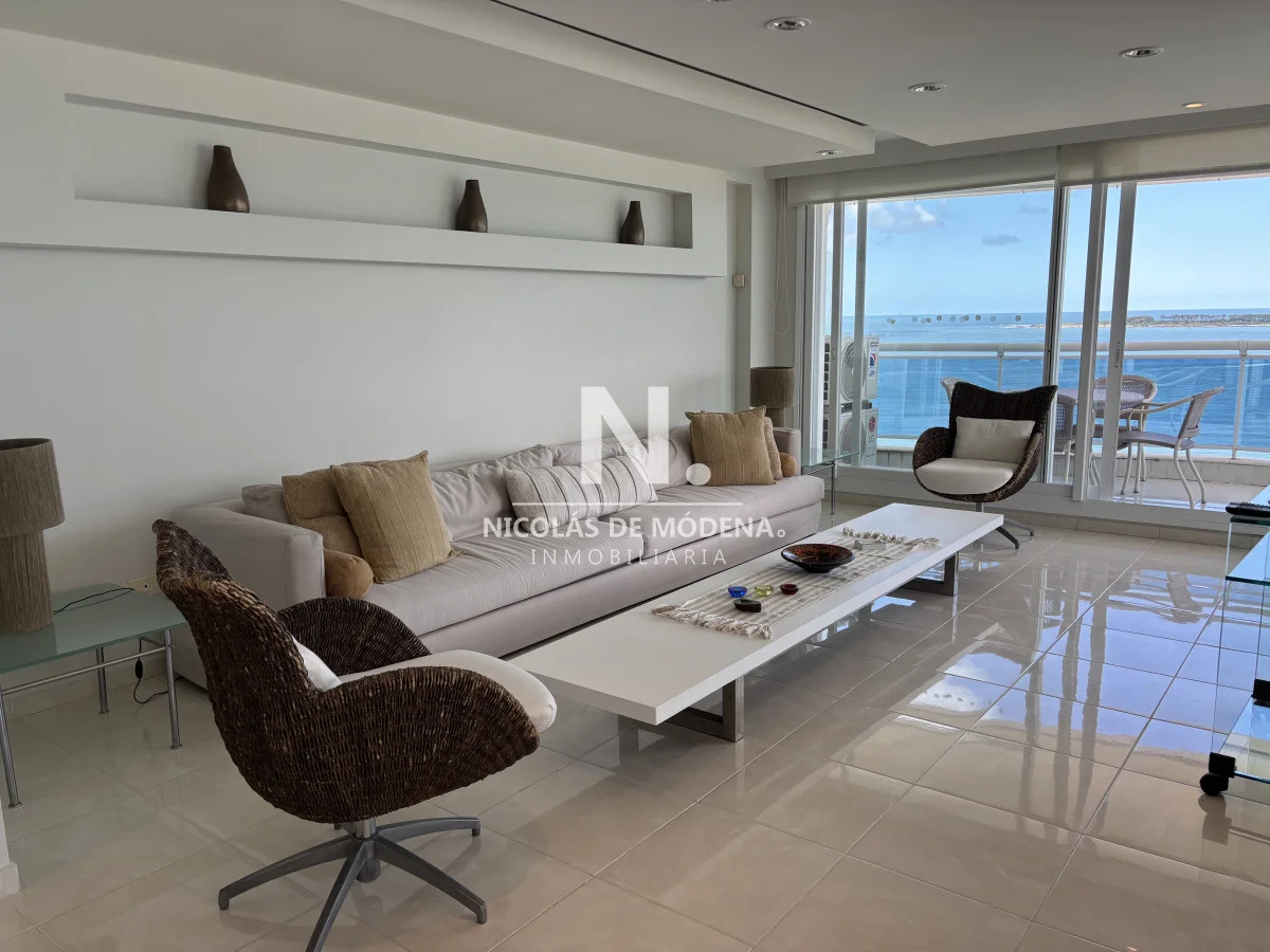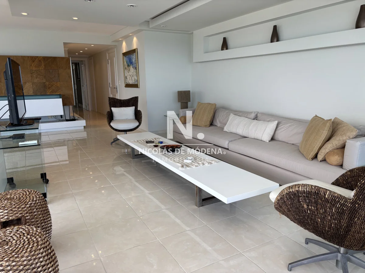 Millenium Tower! Edificio icono pegado a Enjoy Hotel en primera línea frente al mar. Piso alto, living comedor, gran balcón terraza, toilette, tres suites y dependencias de servicio. Garage doble. Mucama diaria, wifi, cable. Excelentes servicios premium. Consulte a nuestros asesores. Referencia Interna : Tera-22235