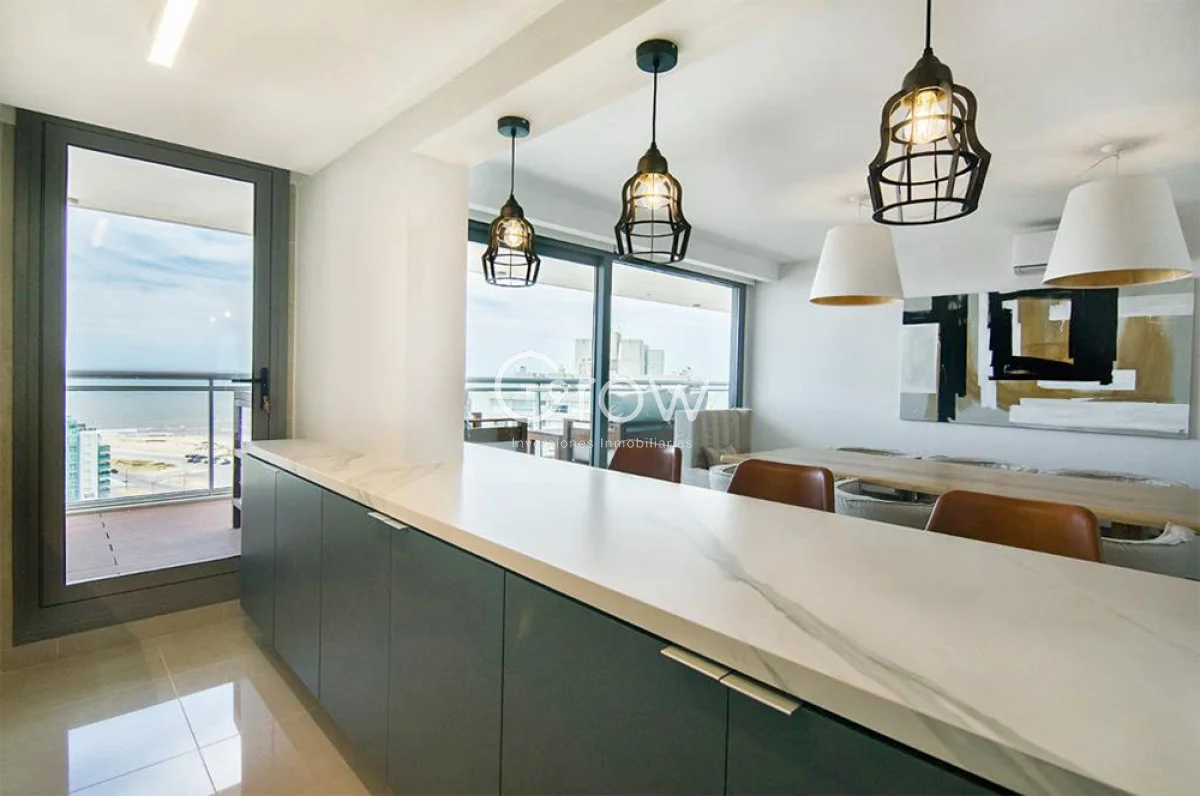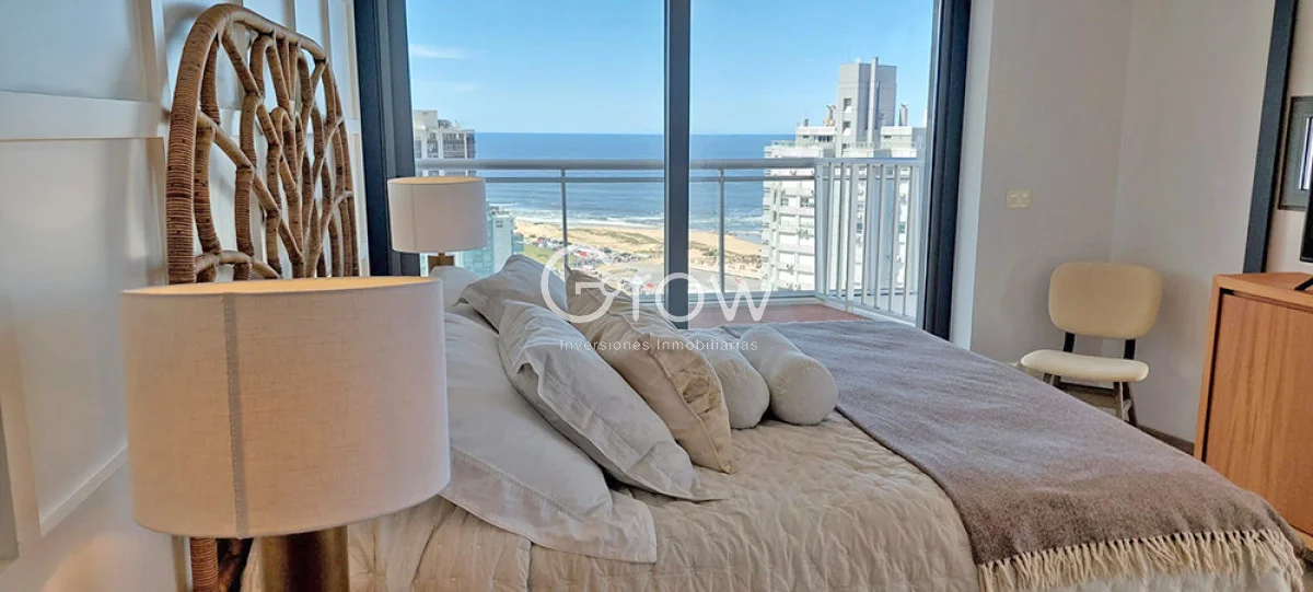 Espectacular Apartamento en Piso 17 con doble Terraza hacia Brava y Mansa. Consta de 3 Dormitorios con muy buena Vista y 3 Baños. Dormitorio Principal en Suite con salida a la Terraza. Comedor diario muy luminoso, Cocina totalmente equipada con Barra integrada, y Living amplio con salida a Terraza. Cuenta con Jacuzzi y Parrillero propios.
