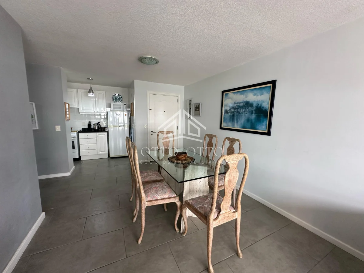 El apartamento cuenta con un luminoso living comedor que invita a relajarse y disfrutar de momentos inolvidables. La cocina está equipada para satisfacer todas tus necesidades culinarias, mientras que los servicios adicionales como el sauna y el servicio de playa añaden un toque de lujo a tu día a día.