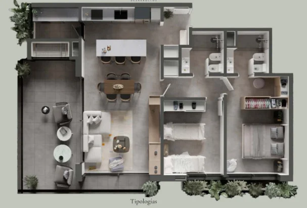 Entre los amerities mas destacados encontramos, dos lugares de estacionamiento por apartamento, boxes cerrado de uso exclusivo para cada unidad, estaciones de carga para autos eléctricos, piscina, solarium, gimnasio, cowork salón de usos múltiples, barbacoa con salida a la piscina, predio cerrado con vigilancia y CCTV