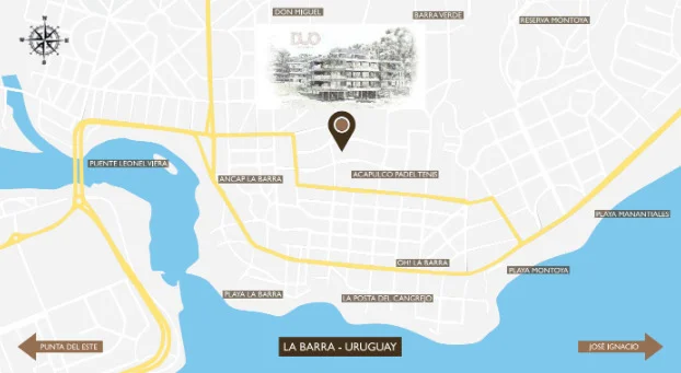 Ubicado en el corazón geográfico de la Barra, se desarrolla en dos bloques de tres pisos que ensamblan en perfecta armonía con el entorno de bosque y playa.