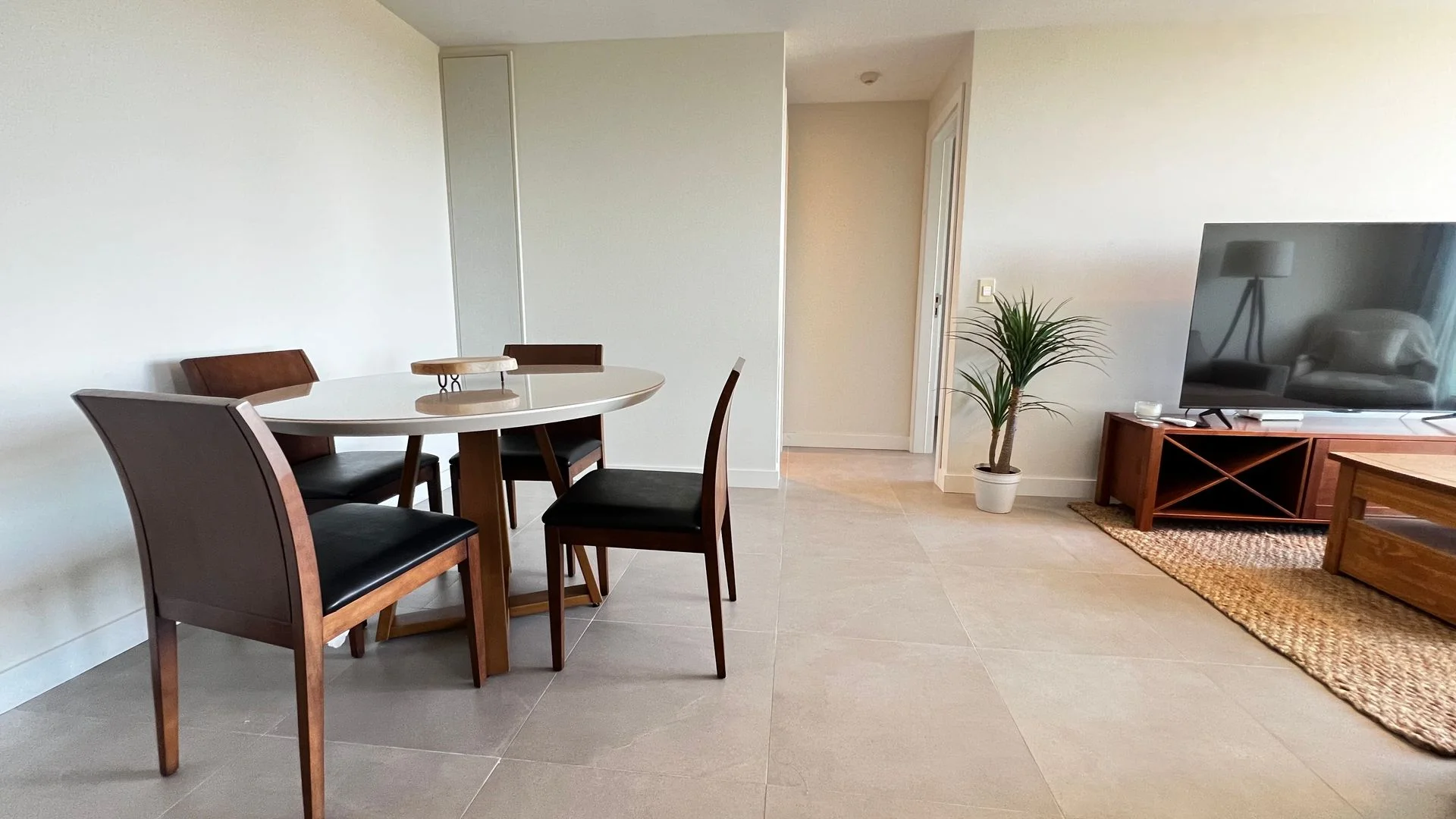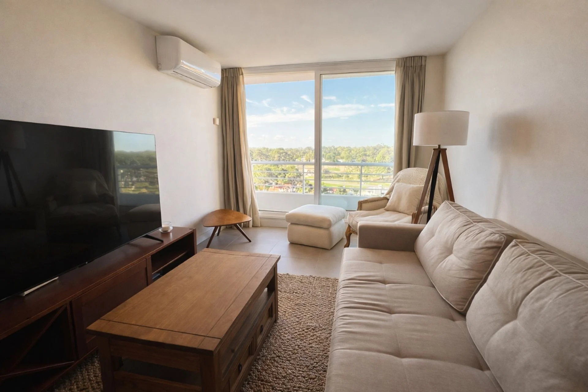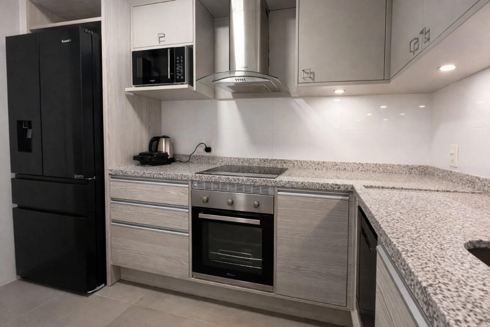 Diseñado con criterios de funcionalidad y confort, ofrece una distribución estratégica con dos dormitorios, dos baños en suite y toilette de visitas. La unidad se presenta prácticamente a nuevo, completamente amoblada y equipada con electrodomésticos de primera línea.