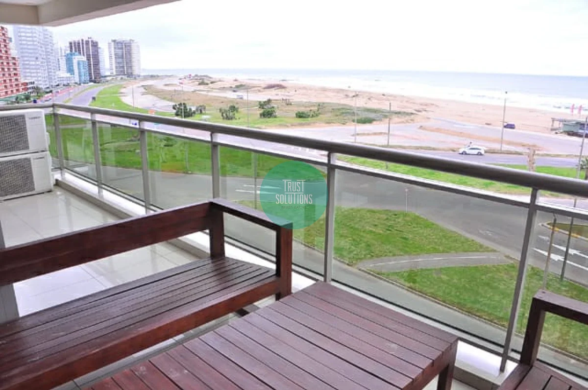 El Apto es esquinero con vista a playa brava y vista parcial a la Mansa