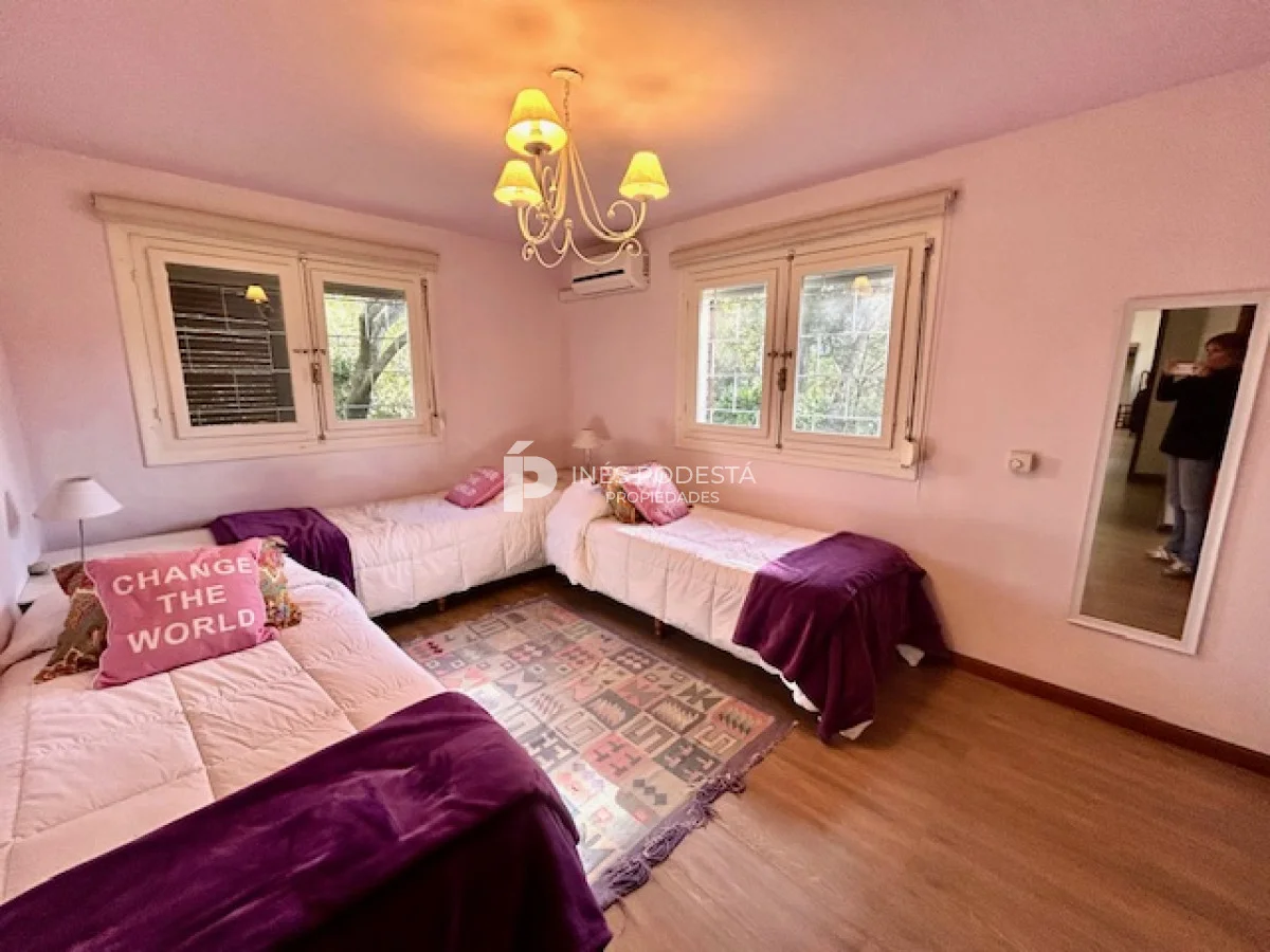 Muy buena propiedad desarrollada en una sola planta, totalmente cercada, a pasos del Sanatorio Cantegril, luminosa con inmejorable orientación solar, 1125 m2 de parque totalmente cercado, sistema de riego por sectores y 305 m2 construidos, Cuenta con una amplia recepción con estufa a leña, toilette, losa radiante sectorizada eléctrica con tarifa triple residencial y aires acondicionados en todos los ambientes, cocina americana, lavadero, 3 dormitorios, 2 baños (principal en suite), toilette, estar o escritorio (se puede utilizar como 4to dormitorio), pisos de porcelanato imitación madera en toda la casa, terraza con vista al jardín, gran parrillero techado, piscina, gge para un auto con portón eléctrico, pronta para ocupar. Ideal para vivir todo el año
