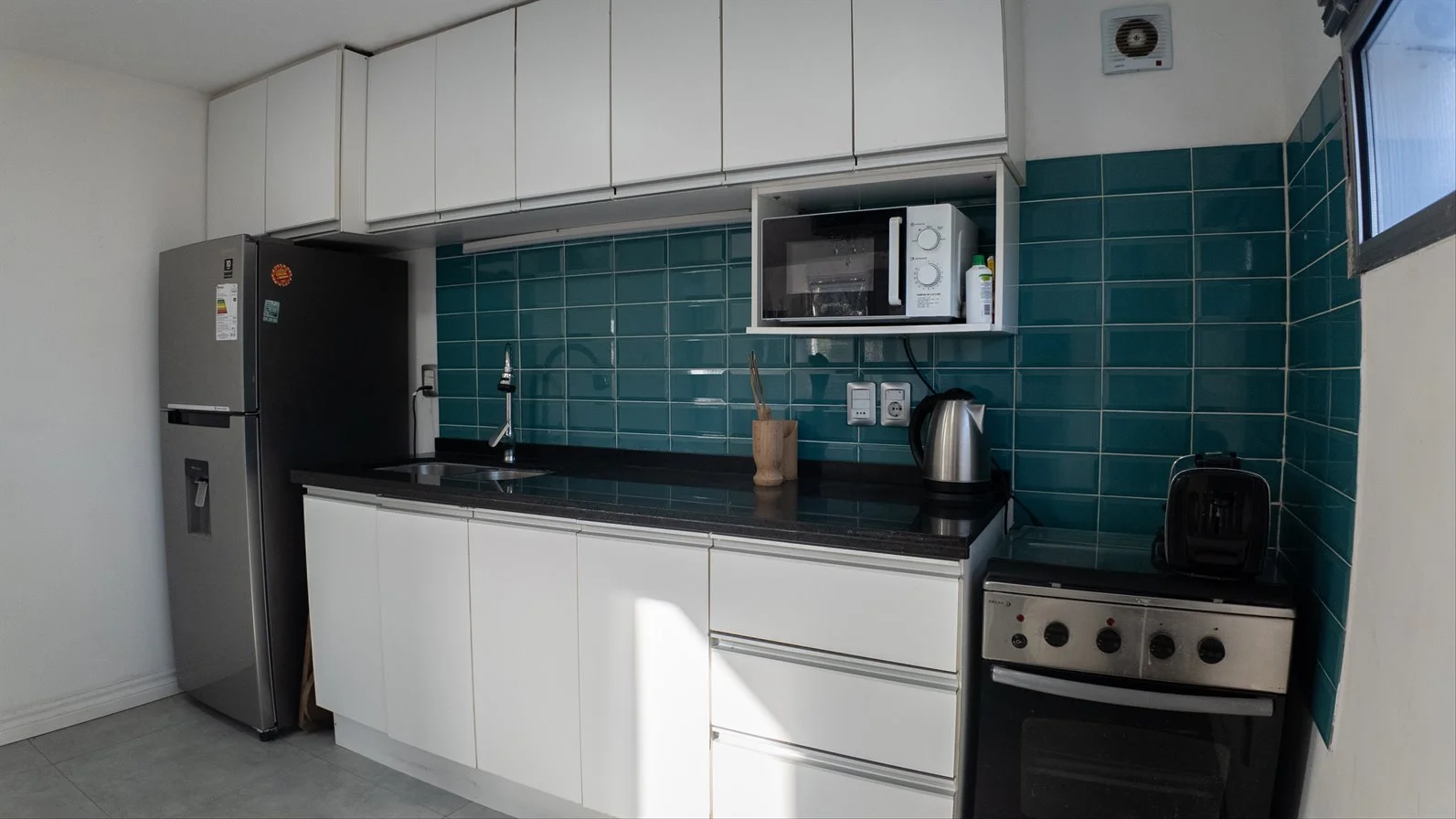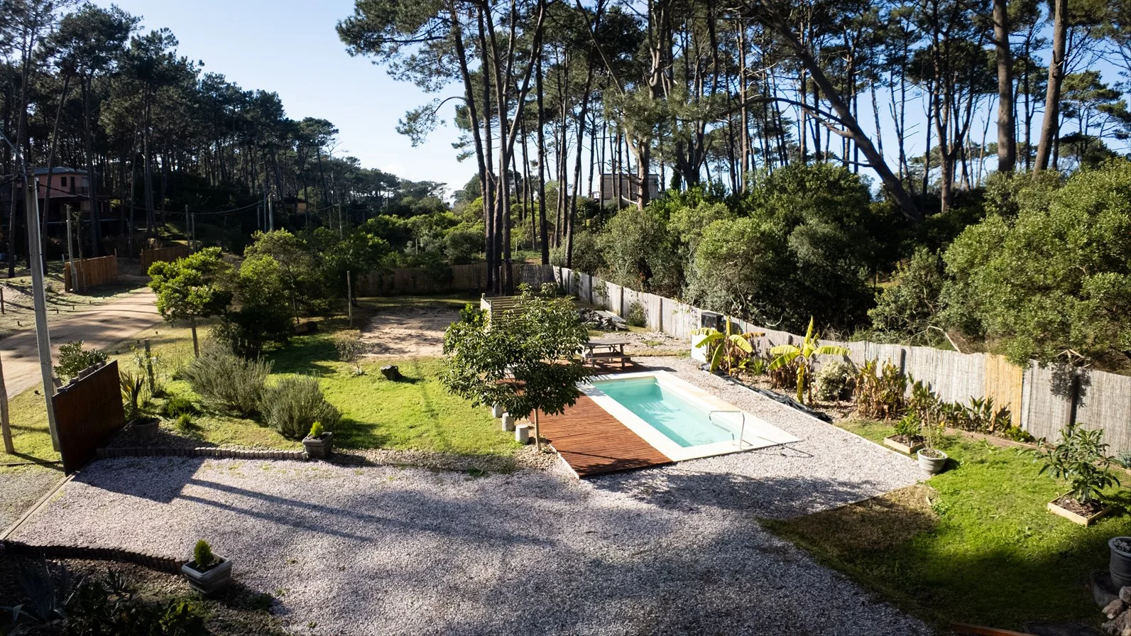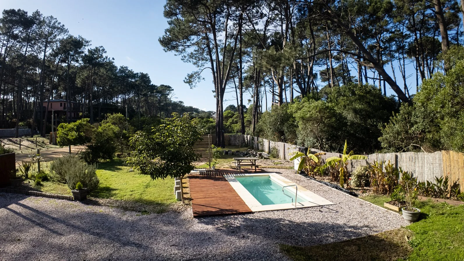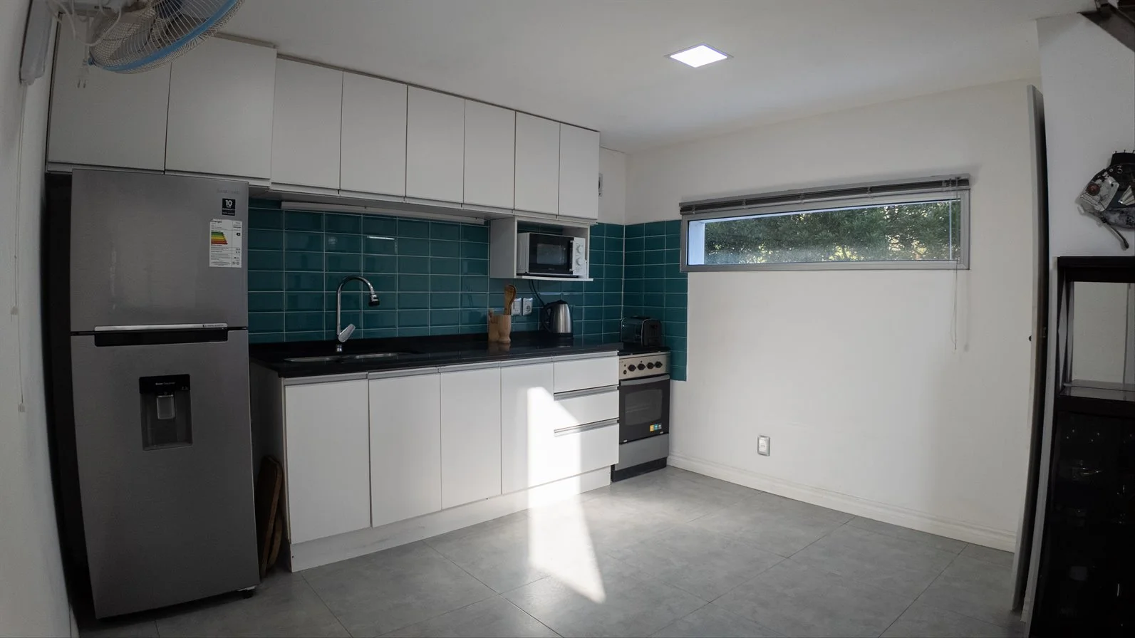 La cocina está integrada al living comedor, con salida al jardín donde se encuentra un parrillero exterior y una piscina recientemente construida, ideal para disfrutar del entorno.