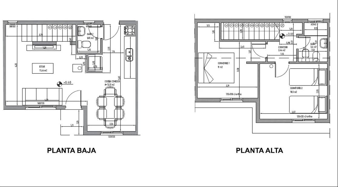En planta alta se encontraran los 2 dormitorios y un baño completo.