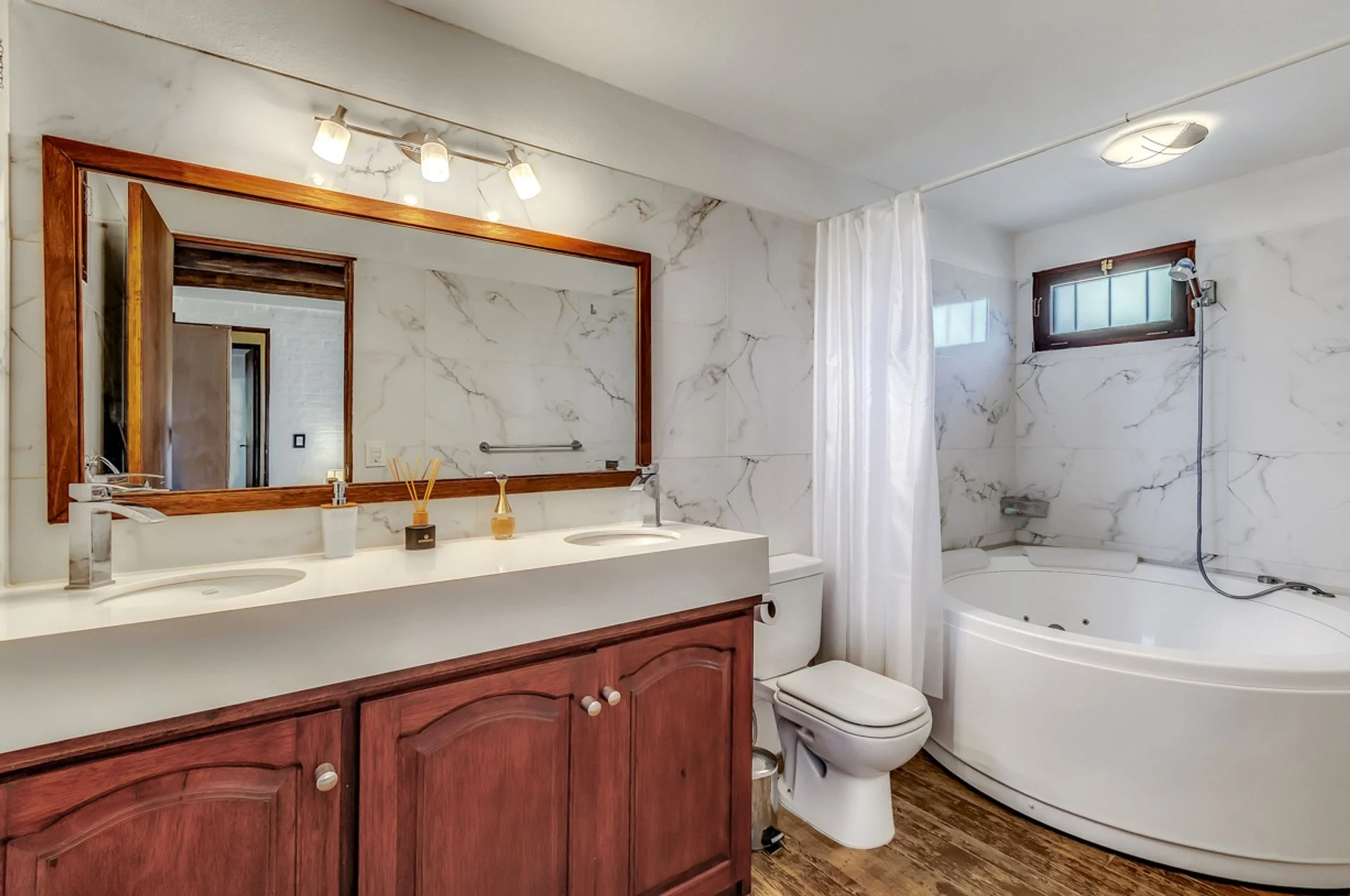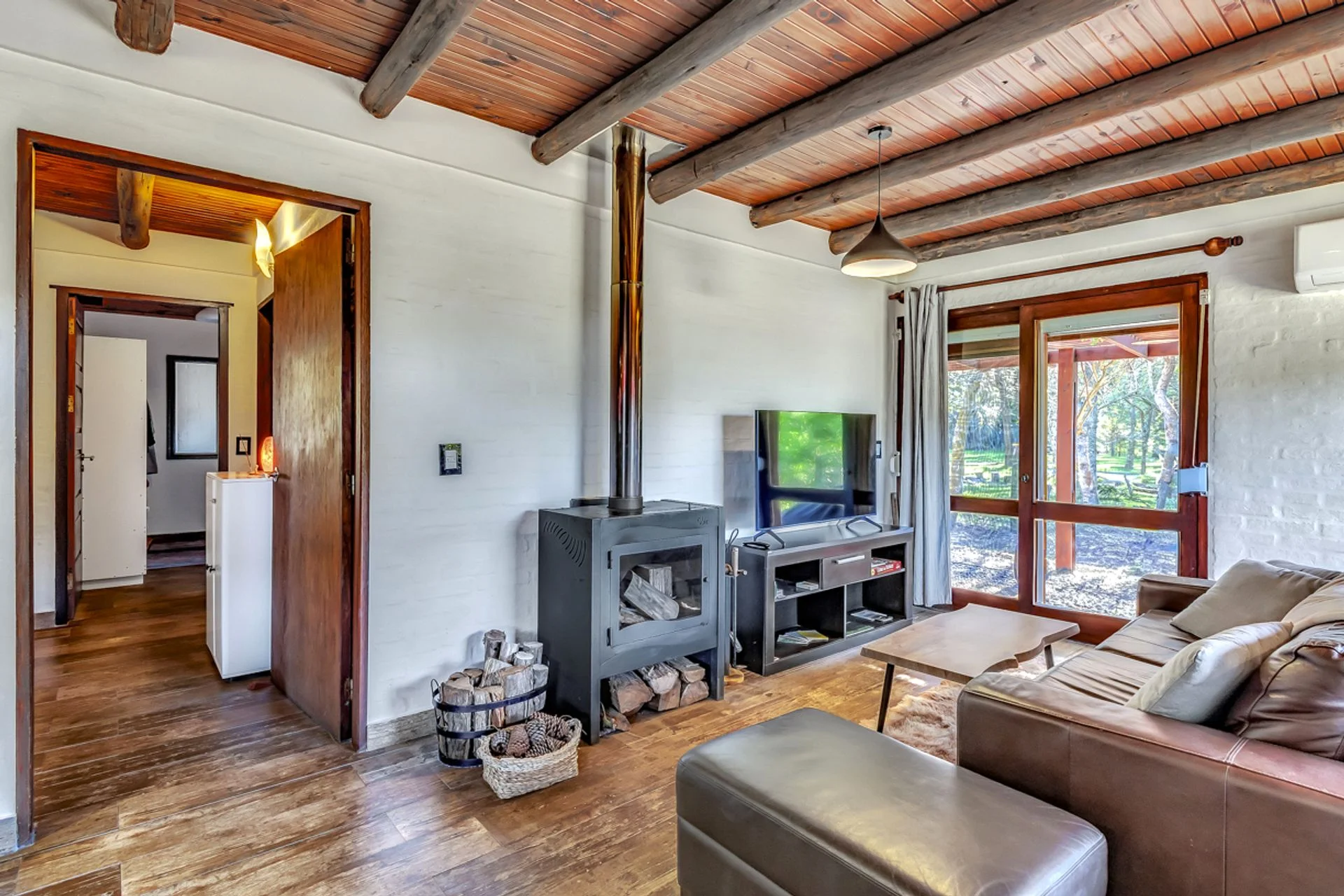 Entre sus destacados interiores, se encuentran 3 dormitorios, 2 baños (uno en suite con jacuzzi), living comedor, cocina integrada con barra, estufa a leña de alto rendimiento y aire acondicionado en todos los ambientes. En el exterior, la propiedad ofrece una piscina climatizada de agua salada, un área de parrillero techado con playroom, y un jardín con diversos espacios sociales y totalmente cercado y privado. Cuenta también con un ingreso techado para 2 vehículos, con pérgola y chapa de policarbonato.