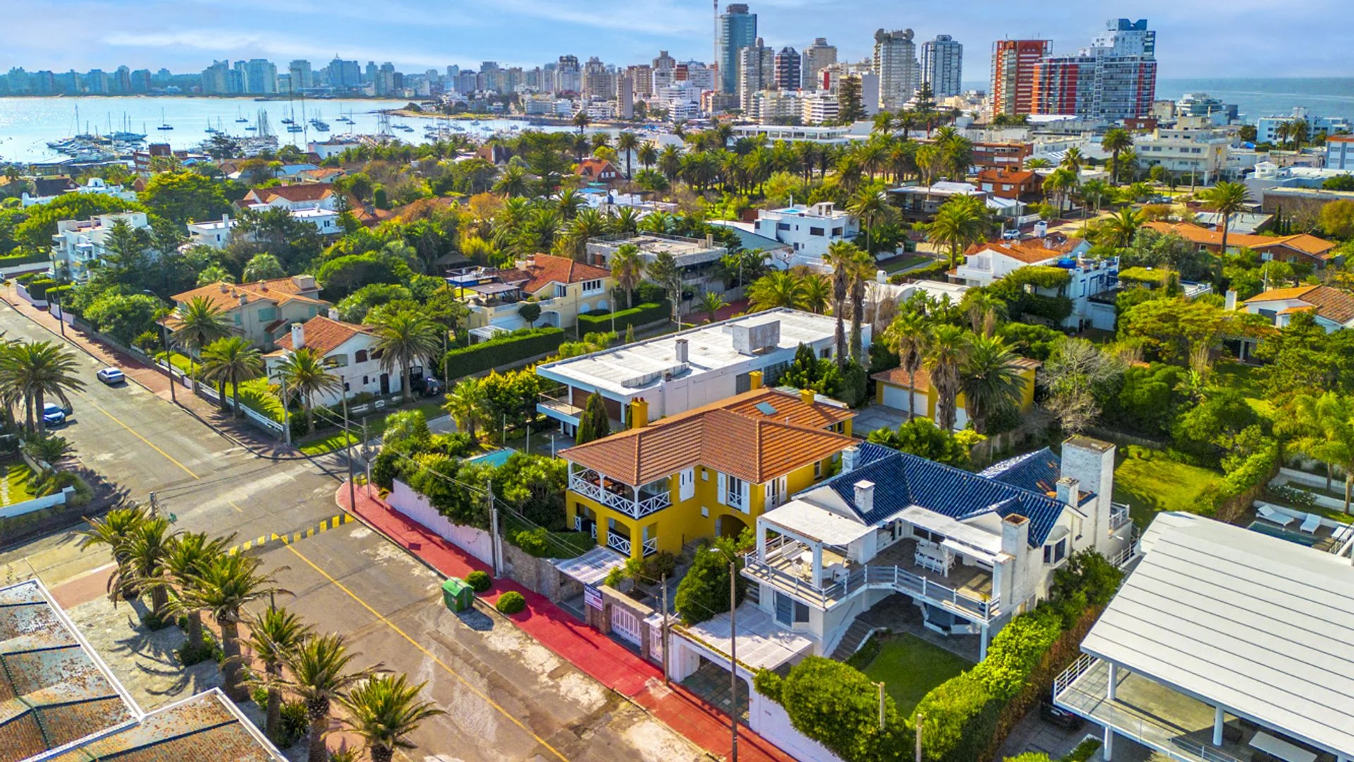 Exteriores y espacios verdes: El diseño paisajístico se hace presente tanto al frente como al fondo, con jardines parquizados, árboles consolidados y un pequeño espacio verde delantero que enmarca la entrada. La seguridad está garantizada mediante muros perimetrales, portones eléctricos de acceso y sistema de alarma.