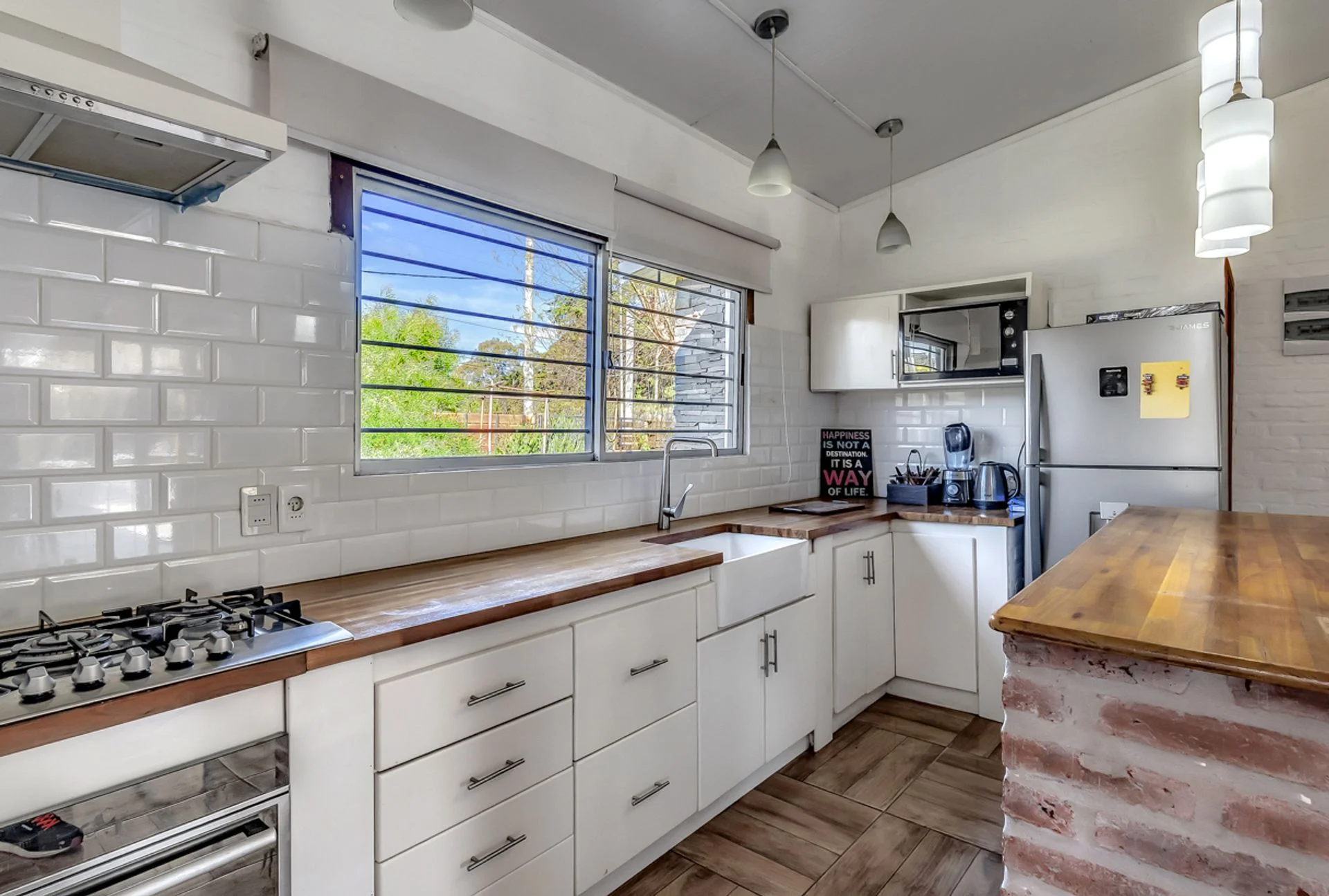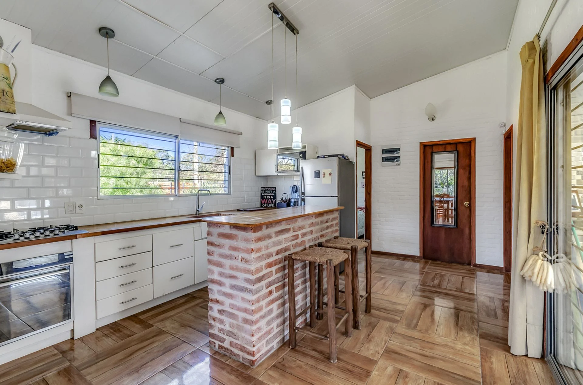 Living-comedor con estufa de alto rendimiento, cocina integrada totalmente equipada. Tres dormitorios, el principal en suite. Dos baños completos.
