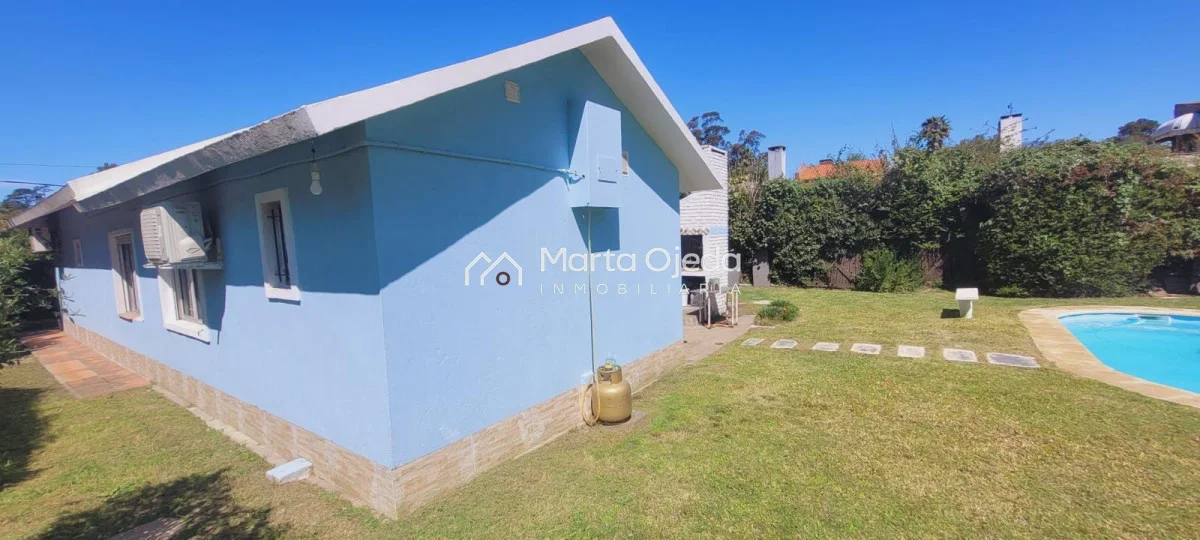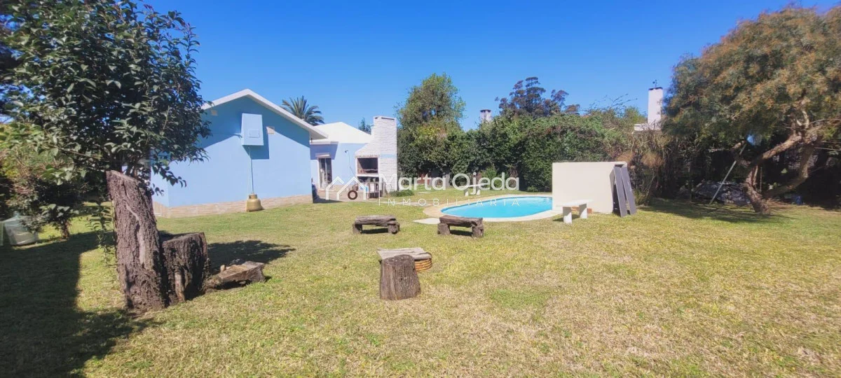 Oportunidad en pinares, casa construcción tradicional paredes de ticholo, techo hormigón, entorno natural con mucho verde, vecinos todo el año y todos los servicios cerca (colegio, supermercados, etc..) la misma cuenta con 3 dormitorios, el dormitorio principal en suite, 2 baños, living comedor con cocina semi integrada, calefacción estufa a leña y aire acondicionado, todos los ambientes con luz natural, aberturas con persianas, al fondo nos encontramos con el parrillero abierto, piscina y jardín amplio, al frente tenemos la cochera con portón eléctrico, además cuenta con pozo de agua y riego, agenda tu visita.