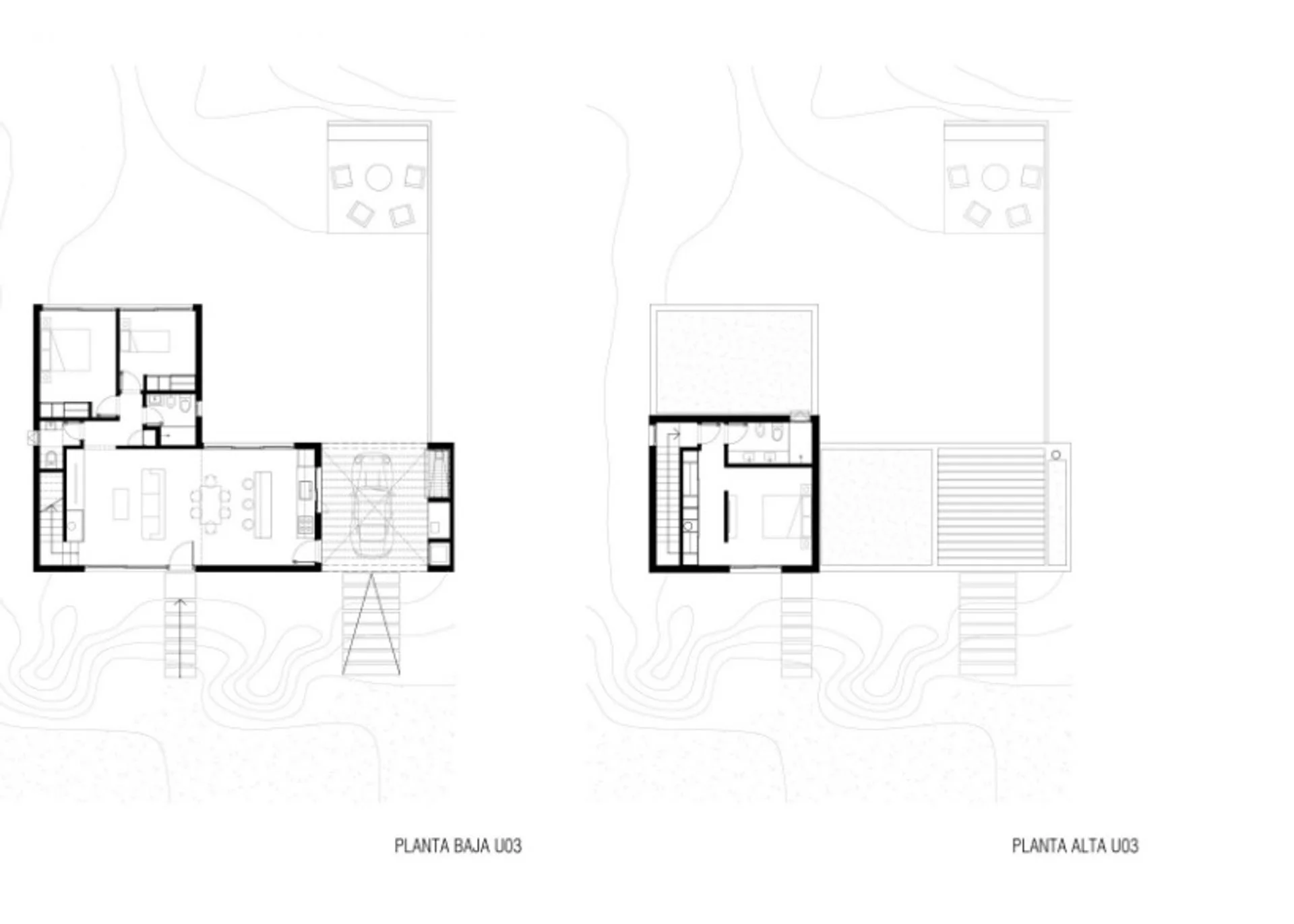 El proyecto arquitectónico concibe la propuesta a modo de una única pieza conformada por volúmenes articulados, estimulando el descubrimiento del balance entre la naturaleza, la independencia de las viviendas y la vida en común para sus residentes.