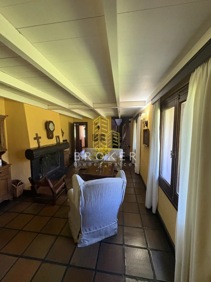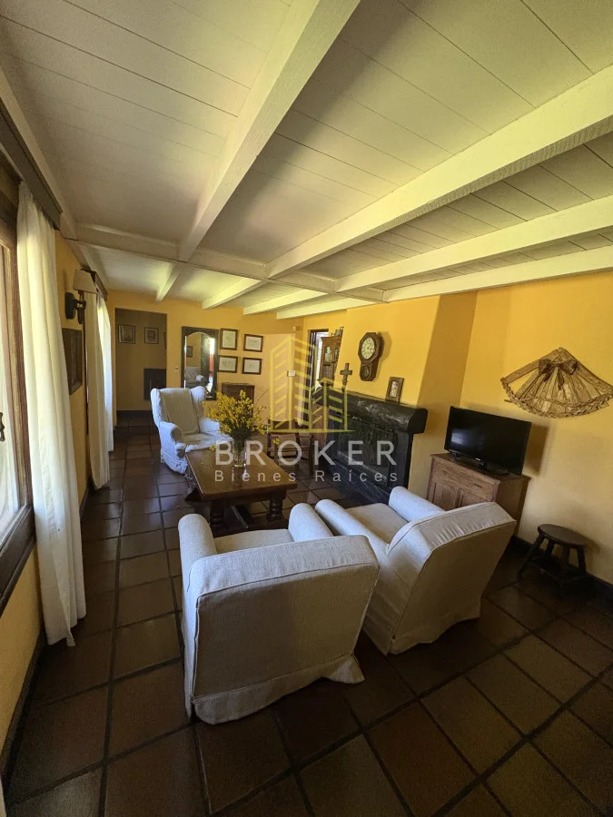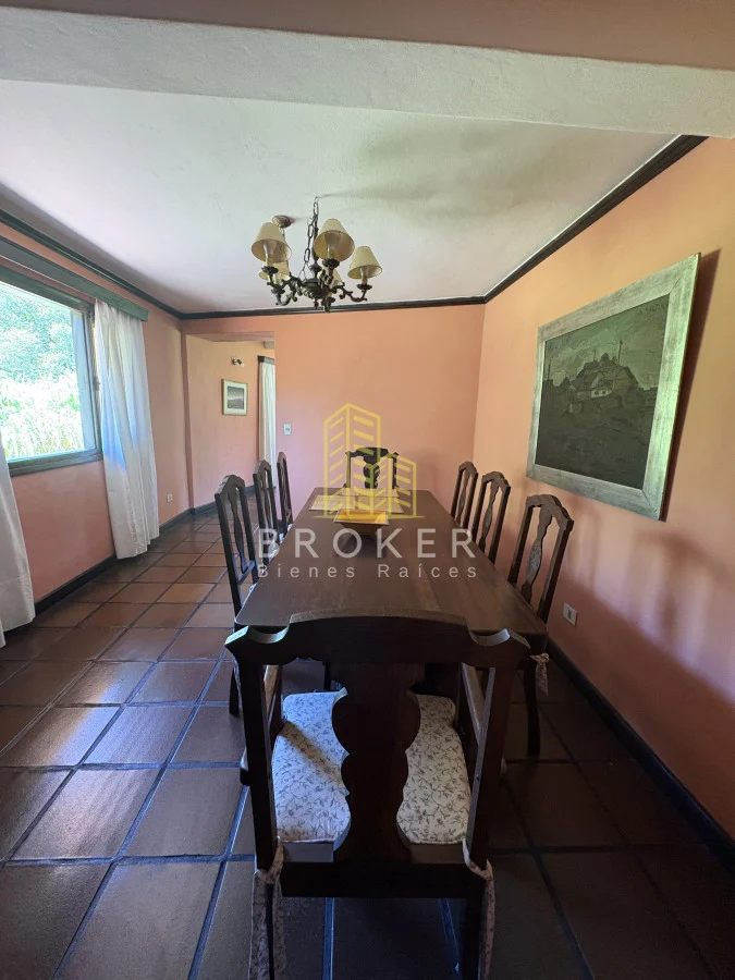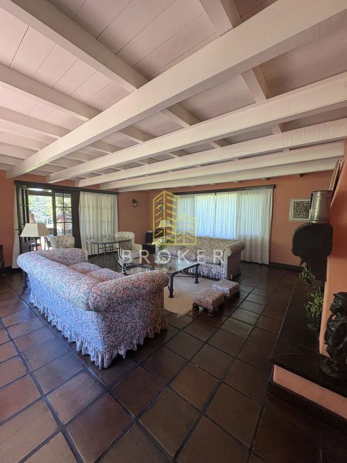 Cuenta con un amplio living comedor para 10 personas con estufa a leña que tiene acceso a un porche techado.