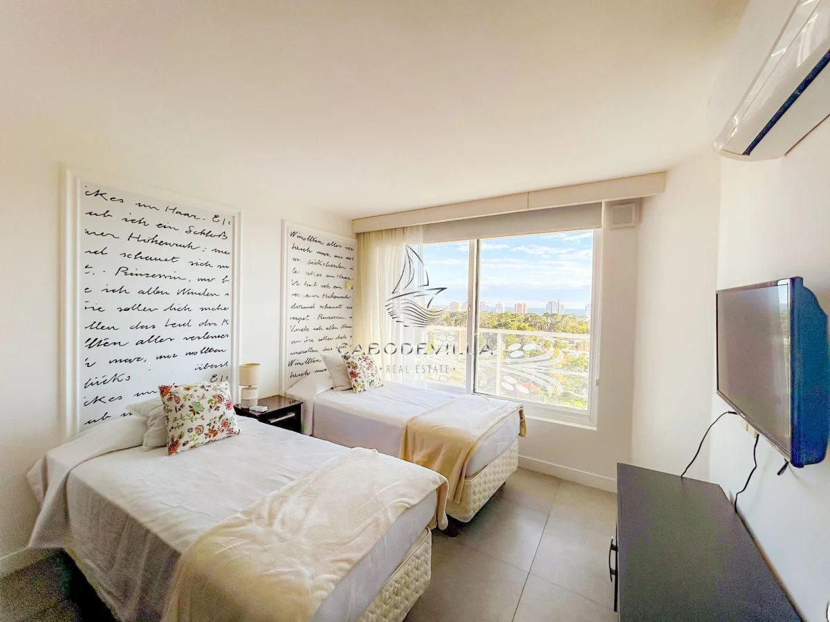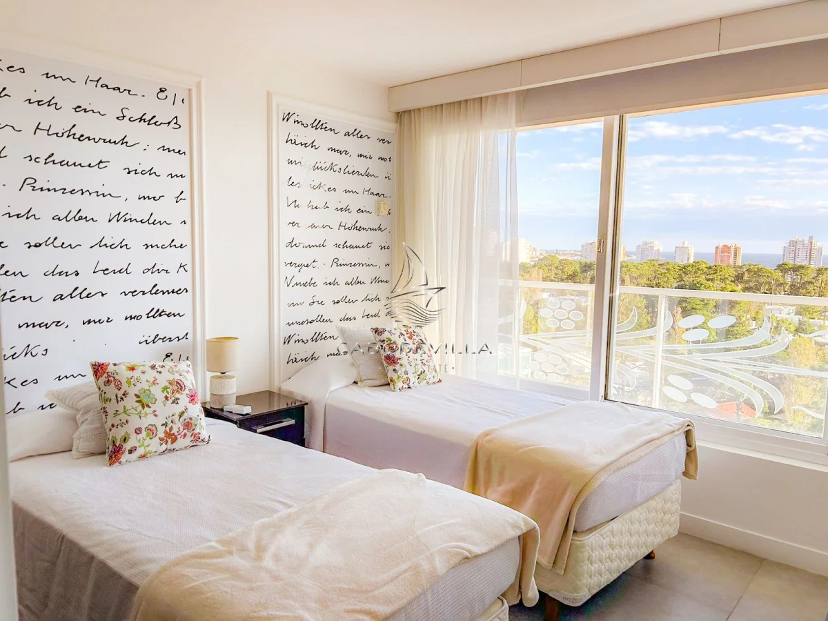 El apartamento se posiciona en el piso 12, lo que lo hace sumamente luminoso en todos sus ambientes y con una vista espectacular de Punta del Este a Isla Gorriti, Lobos, Solanas y la Ciudad.