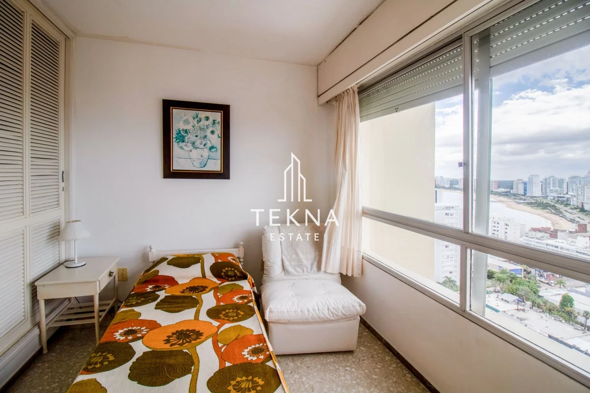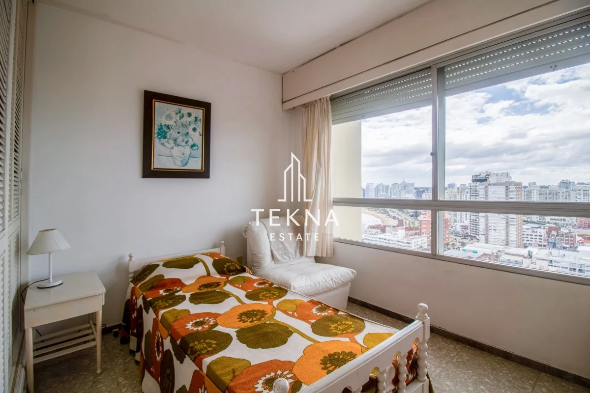 Tres dormitorios, uno en suite, dos baños, living comedor y cocina definida. El apartamento se caracteriza por su linda vista, directa al mar y también se visualizan lindas zonas de la ciudad, al ser piso alto las vistas son espectaculares.