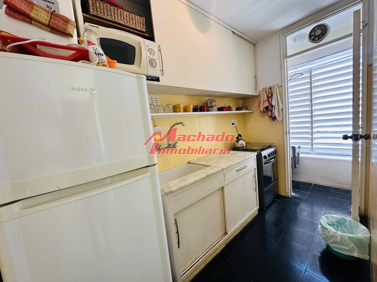 La cocina se integra armoniosamente con el living comedor, creando un ambiente abierto y acogedor, ideal para entretener a amigos o disfrutar de una noche tranquila en casa.