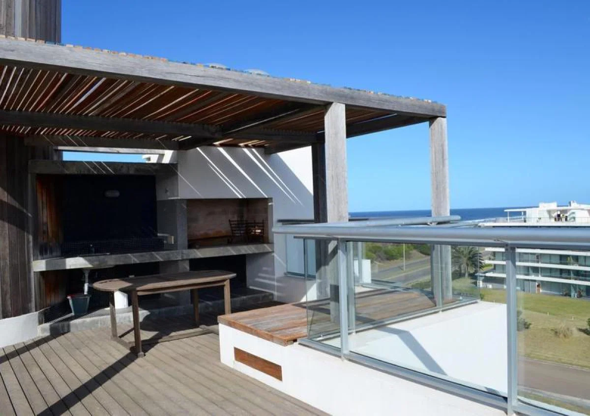 Penthouse en Venta y Alquiler, 2 dormitorios, Playa Brava, Rincón Del Indio, Punta Del Este. Espectacular penthouse. Cuenta con cómodo living comedor con salida a balcón con espectacular vista al mar, 2 dormitorios en suite ( ppal con salida a balcón), toilette, cocina definida muy bien equipada con salida a lavadero. Terraza en el último piso de uso exclusivo con parrillero. 2 garages. Calefacción por losa radiante sectorizada y aire acondicionado en todos los ambientes. Finamente decorado y amoblado! Tiene servicio de mucamas diario, servicio de playa, vigilancia, etc.