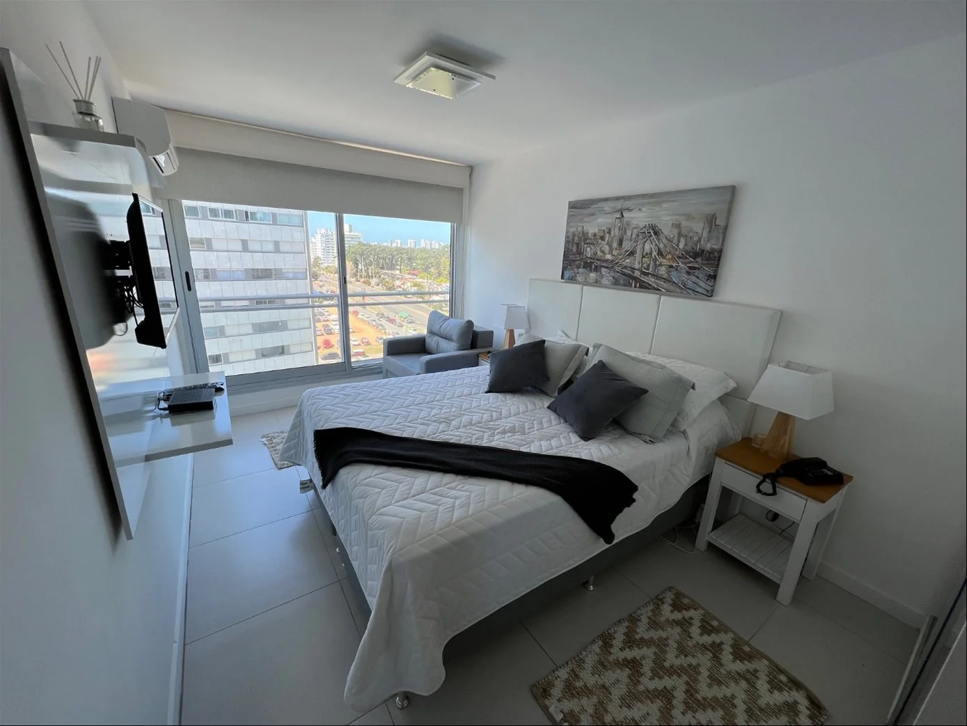 Moderno apartamento en edificio Bellagio Tower de Avenida Roosevelt.Cuenta con 45 m2 interiores los cuales se distribuyen en:1 dormitorio.1 baño.Terraza lavadero.Terraza con vista.Garaje.Totalmente amueblado.Servicios:El edificio cuenta con piscina exterior, piscina climatizada interior, gym, sauna, sala de reuniones, barbacoa, seguridad 24 hs. (CW241544)