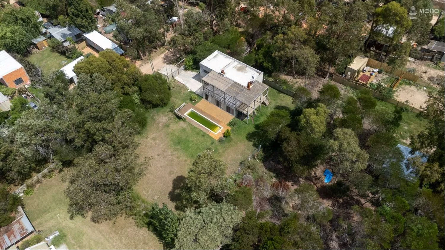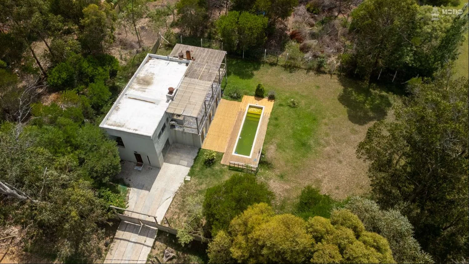El área exterior se completa con piscina con deck, integrada al paisaje natural que rodea la propiedad.