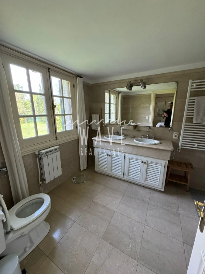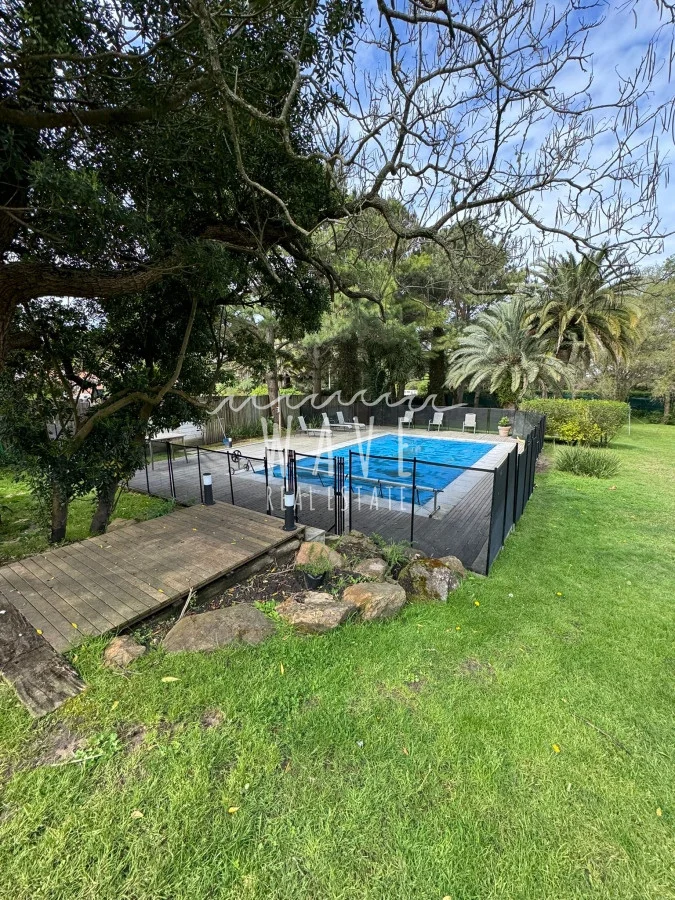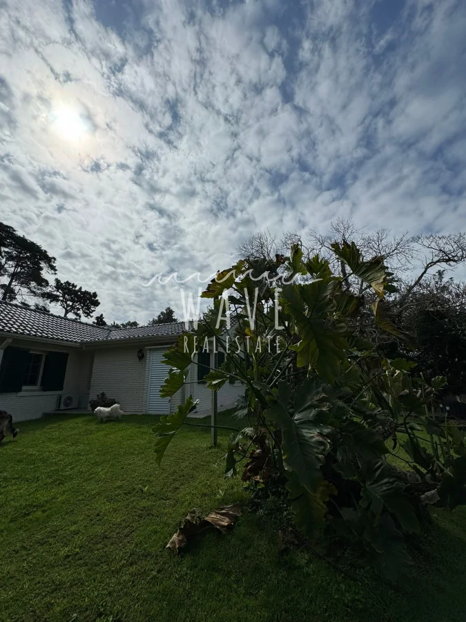 En la exclusiva zona del Golf, con el ruido de mar presente, una casa de 4000 m2 de terreno con cerco perimetral, 5 dormitorios, casa de huéspedes, parrillero techado, amplios espacios, piscina climatizada cercada. Con espacios amplios, equipamiento full. Para disfrutar del canto de los pájaros en el jardín, de la tranquilidad de una zona con un encantador entorno natural, que además es segura y a 5 minutos en auto de Punta o de La Barra.
