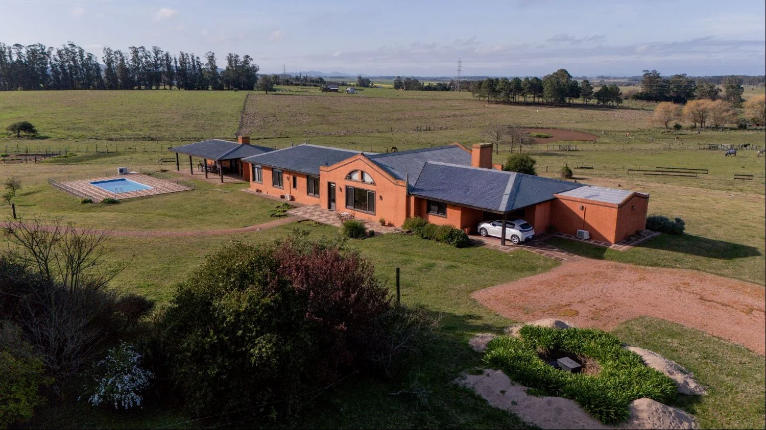 La casa principal cuenta con 906 m2 construidos desarrollados en una planta.