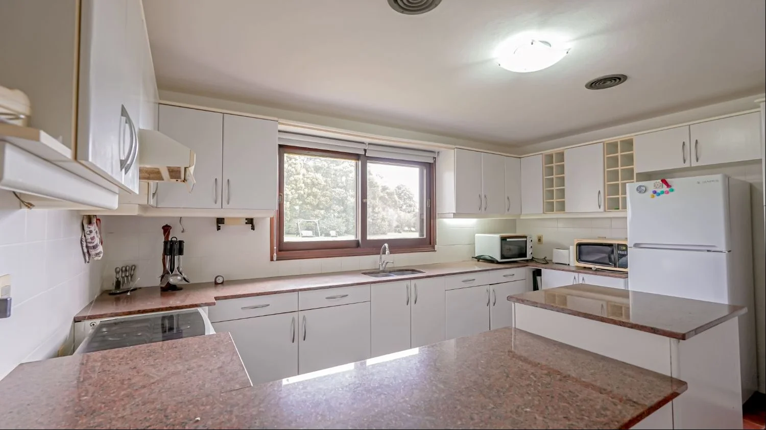 Posee una cocina completa que cubre las necesidades de la barbacoa anexa y/o de los huéspedes.