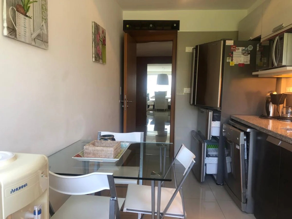 Lindisimo departamento de tres dormitorios, todos en suite, con dependencia de servicio. Se destaca por su gran terraza en forma de L. Incluye servicio de playa y de mucama. Dispone de 2 cocheras. El edificio ofrece varios amenities, como pileta climatizada interna, sauna, gimnasio, sum y una pileta externa.