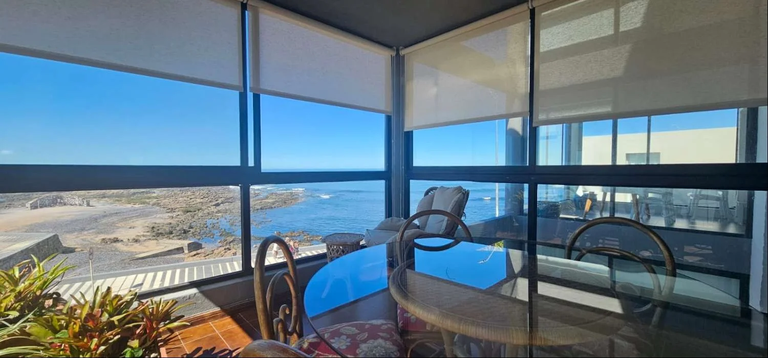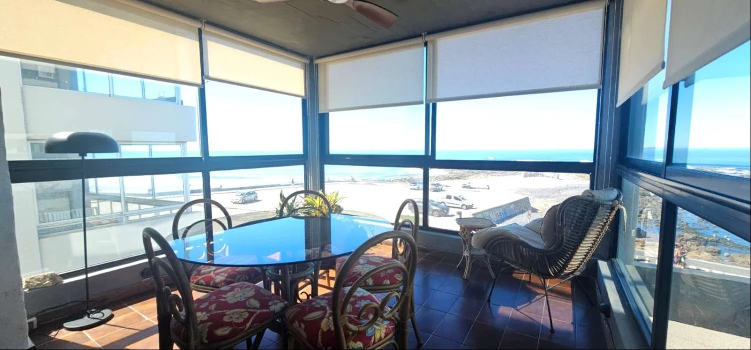 Se vende este regio departamento frente por frente a la virgen que está sobre la rambla esquina calle 25 playa emir, este departamento cuenta con 2 dormitorios ( 1 de ellos en suite) más servicio completo. Muy comodo living comedor, con estufa a leña de alto rendimiento, aires acondicionado, espacios de guardado. Y una terraza sobre el mar que nos da una vista inigualable, la terraza está cerrada con vidrio lo que nos da la posibilidad de disfrutarla tanto invierno como verano. La cocina separada muy cómoda, con doble mesada y lavavajillas, y un lavadero cómodo en la parte de atrás. Los baños hechos a nuevo, y con toalleros calefaccionados. El edificio por otra parte cuenta con sauna, portería, servicio de mucama todos los días, y una regia pileta con sol durante todo el día.