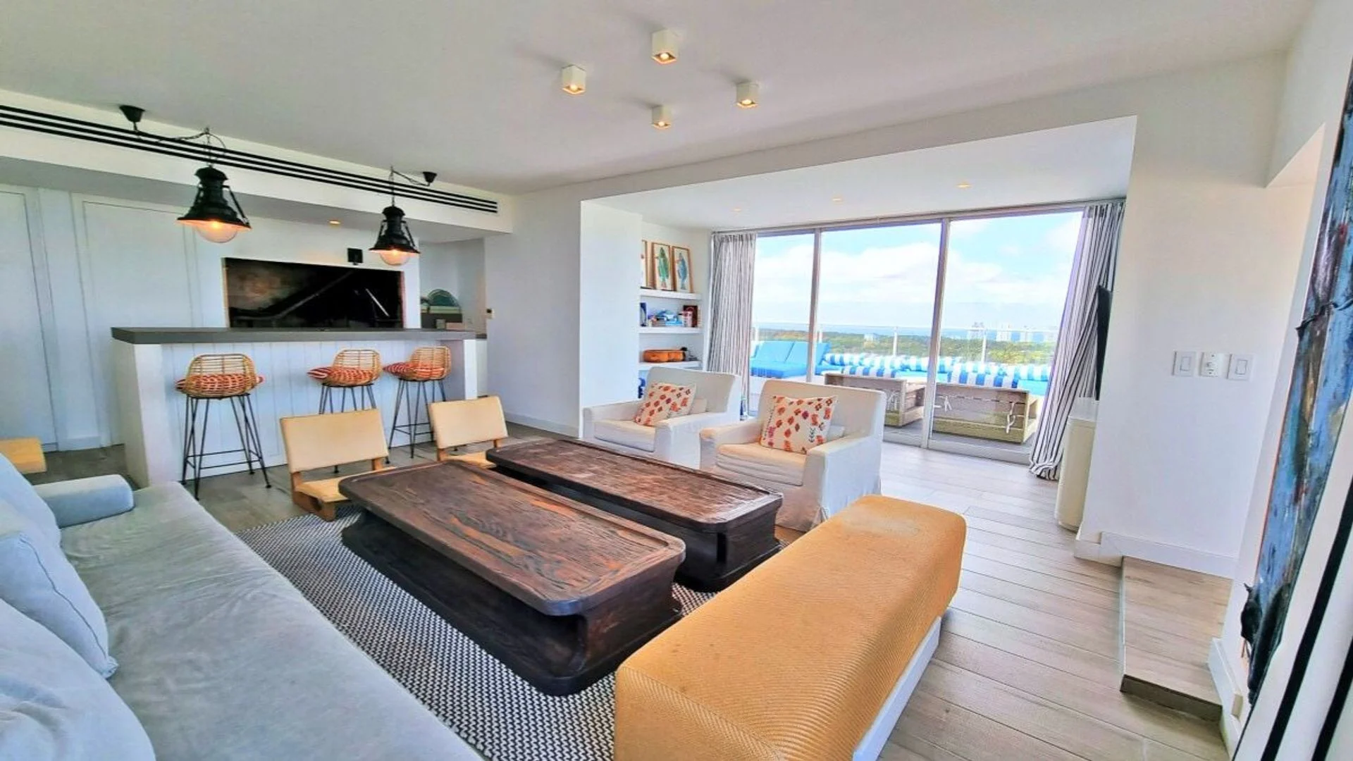 Este penthouse dúplex de 280 m² fue completamente reciclado con materiales de calidad y ofrece ambientes amplios, funcionales y una vista privilegiada al mar y al bosque.